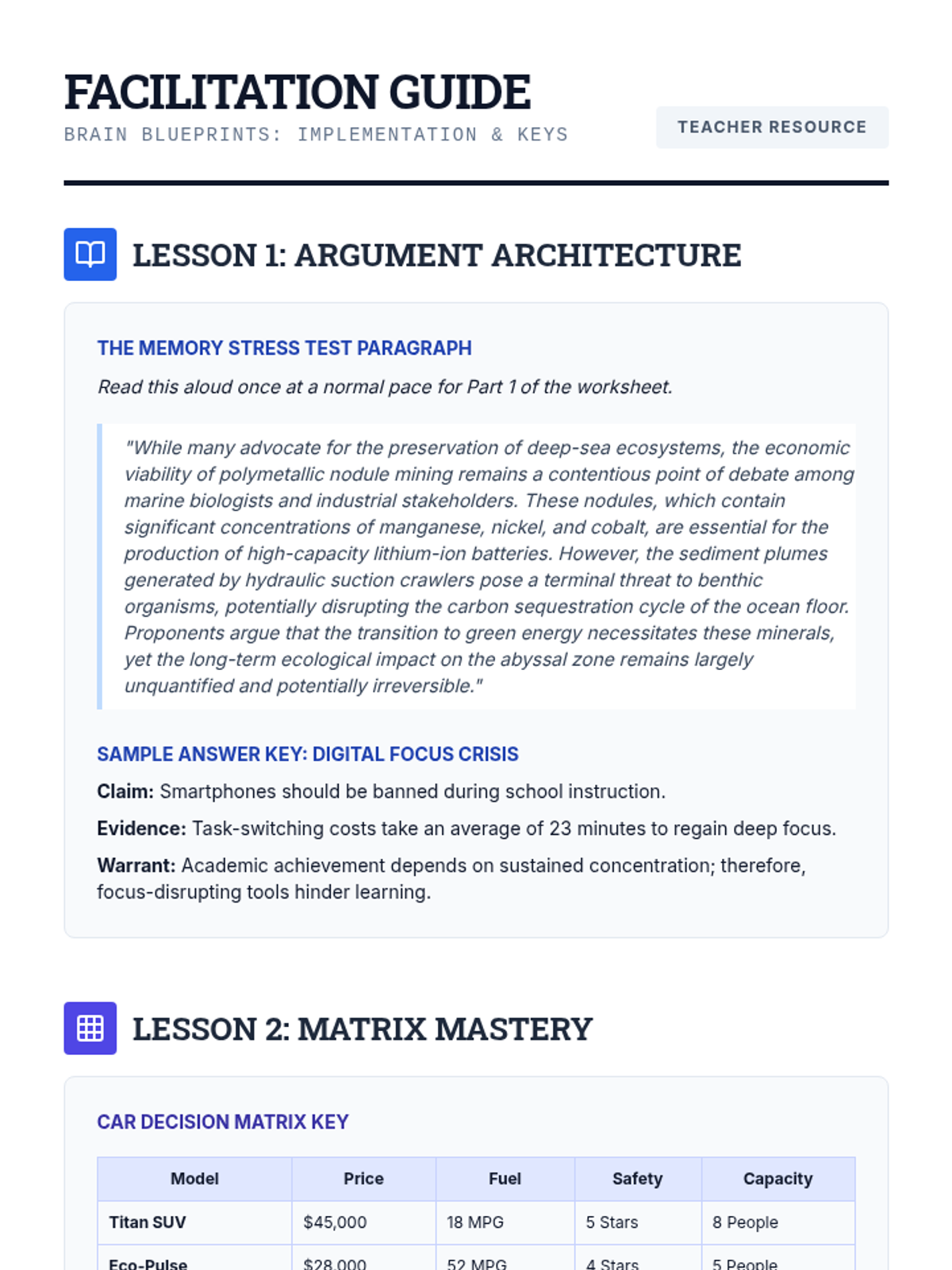 Focusing on self-awareness, this sequence helps 11th-grade students identify internal and external distractors that deplete working memory resources. Students learn to monitor their attention span, implement environmental controls, and develop a personalized 'Attention Regulation Profile' through case studies, time-boxing practice, and mindful resets.
