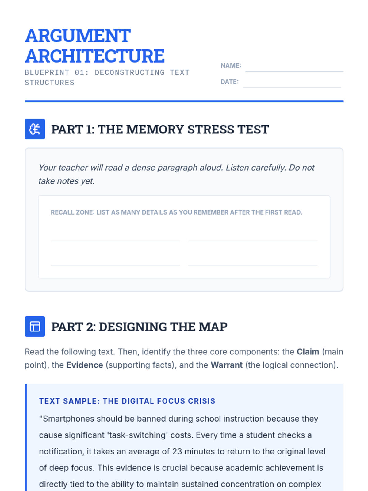 This sequence equips 11th-grade students with advanced visual strategies to reduce cognitive load and enhance academic synthesis. Students move from mapping basic arguments to designing comprehensive, externalized memory aids for complex multi-source research.