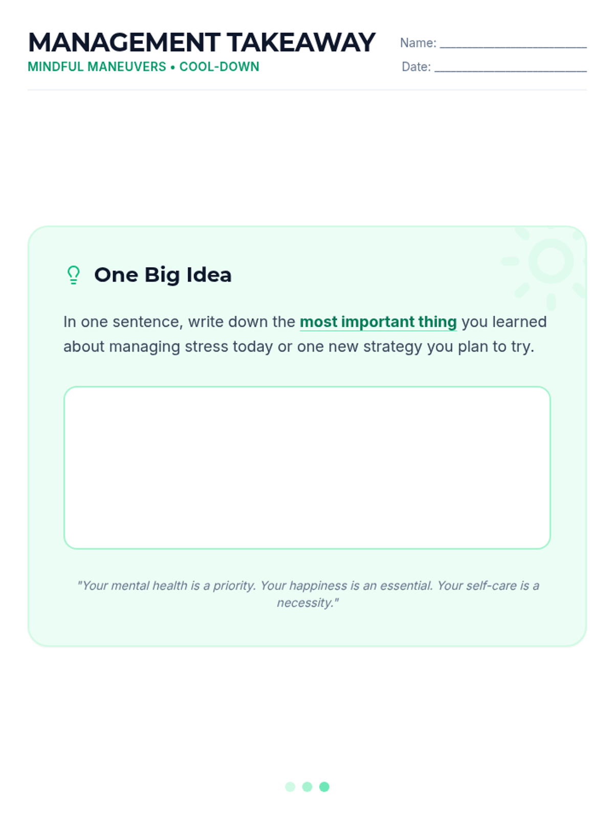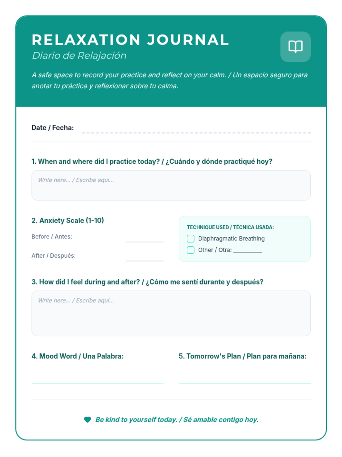 Positive Self-Talk PracticeCognitive restructuring techniques to identify and reframe negative internal dialogue. Strengthens self-compassion and emotional resilience through practical affirmations and mindfulness exercises.