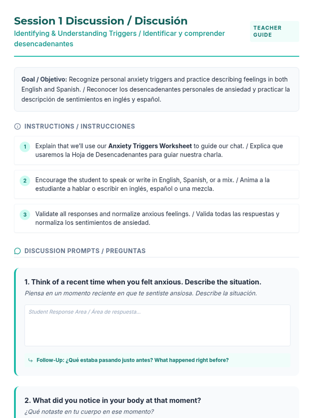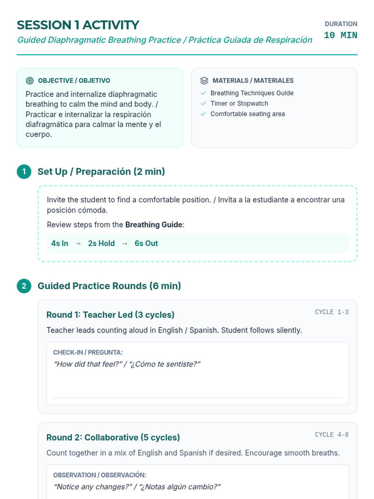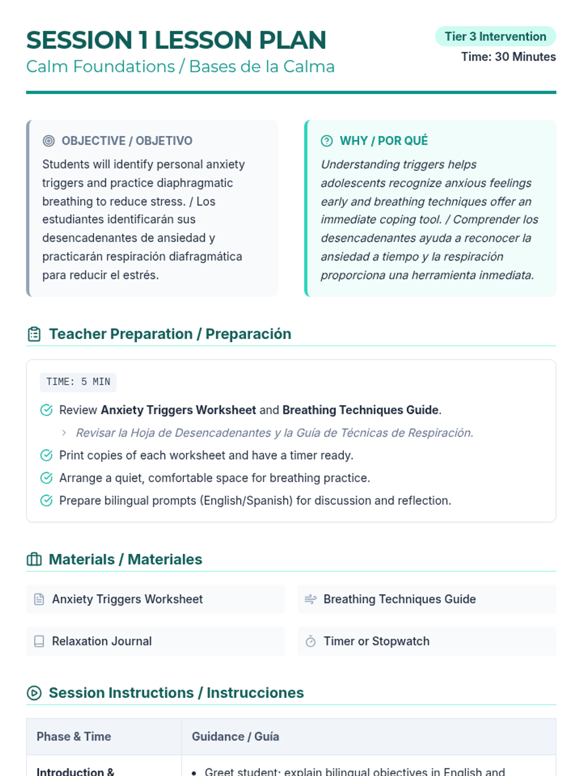 An 8-week Tier 3 CBT intervention designed to help students manage anxiety through physiological awareness, relaxation techniques, cognitive restructuring, and self-advocacy skills. This sequence builds on previous psychoeducation to provide concrete tools for emotional regulation and social problem-solving.
