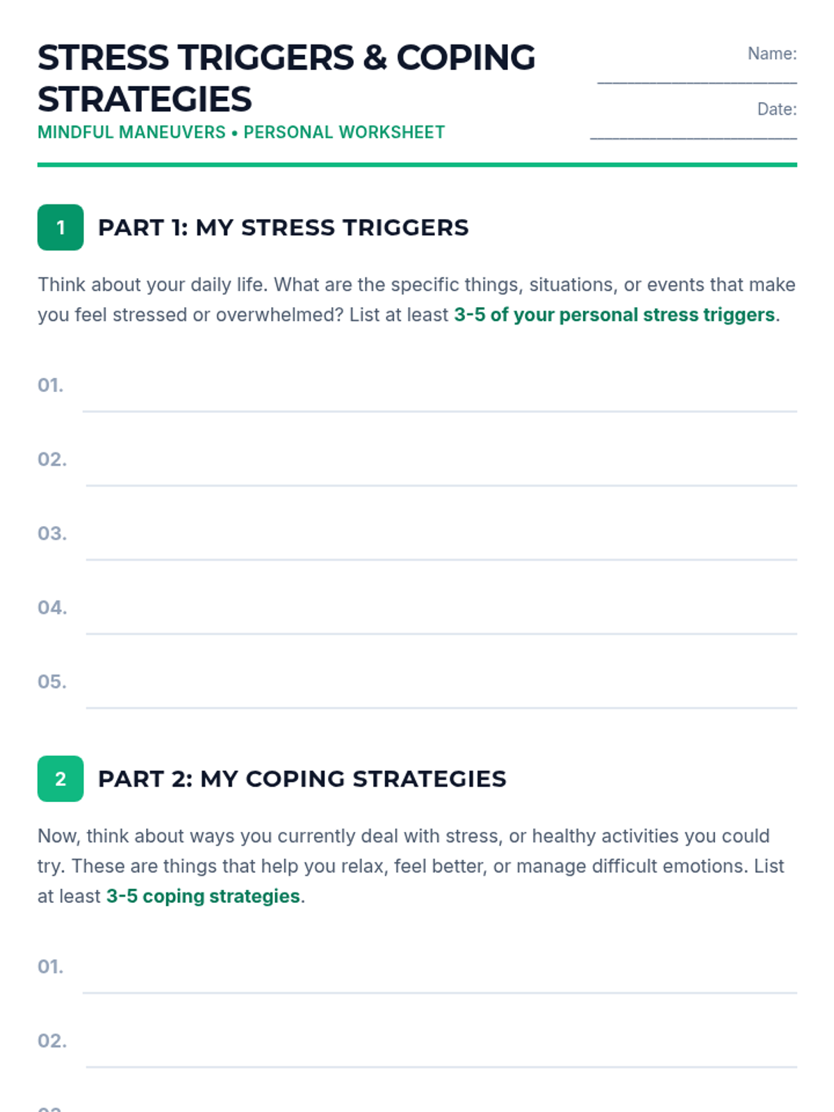 Coping Toolbox Worksheet