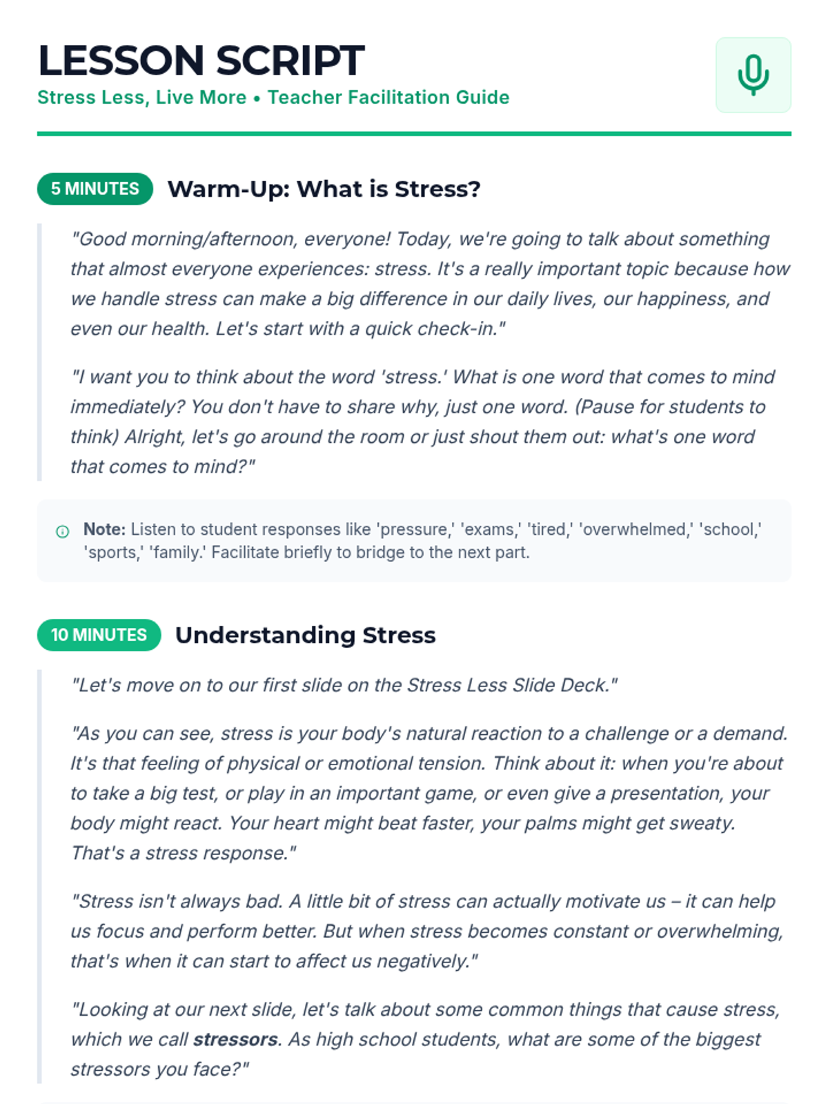 Stress Lab Teacher Guide