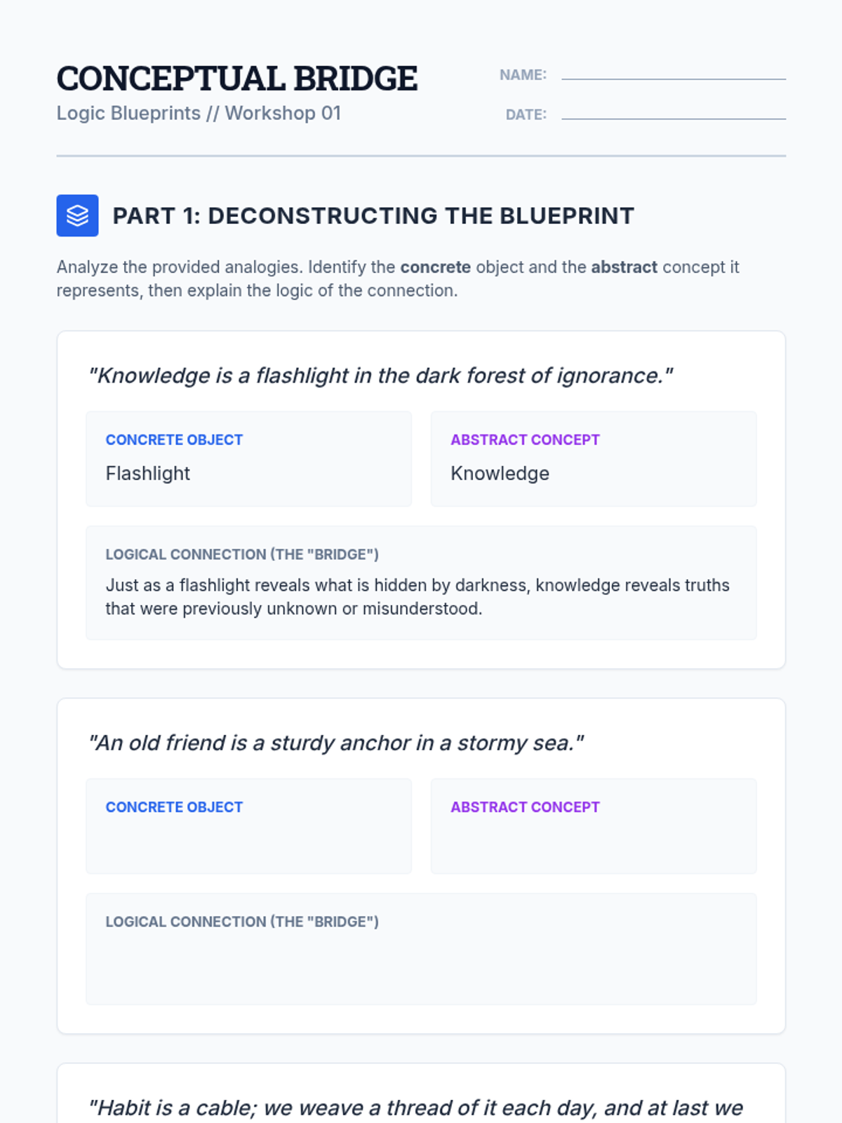 A high-level bridging of English Language Arts and formal logic, focusing on the structural patterns of reasoning through analogies. Students move from basic symbolic notation to complex deductive puzzles, treating language with mathematical precision.