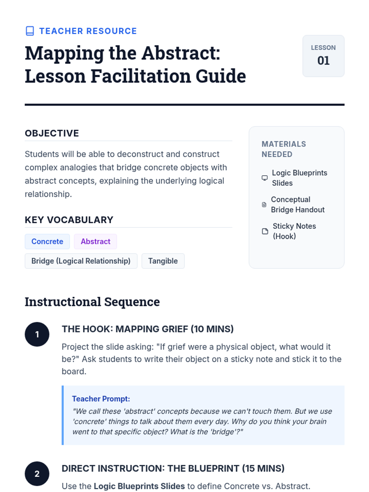 A high school ELA sequence exploring analogies as tools for critical thinking, rhetorical analysis, and decoding complex texts. Students move from concrete connections to identifying logical fallacies and participating in a Socratic Seminar on the limits of comparison.