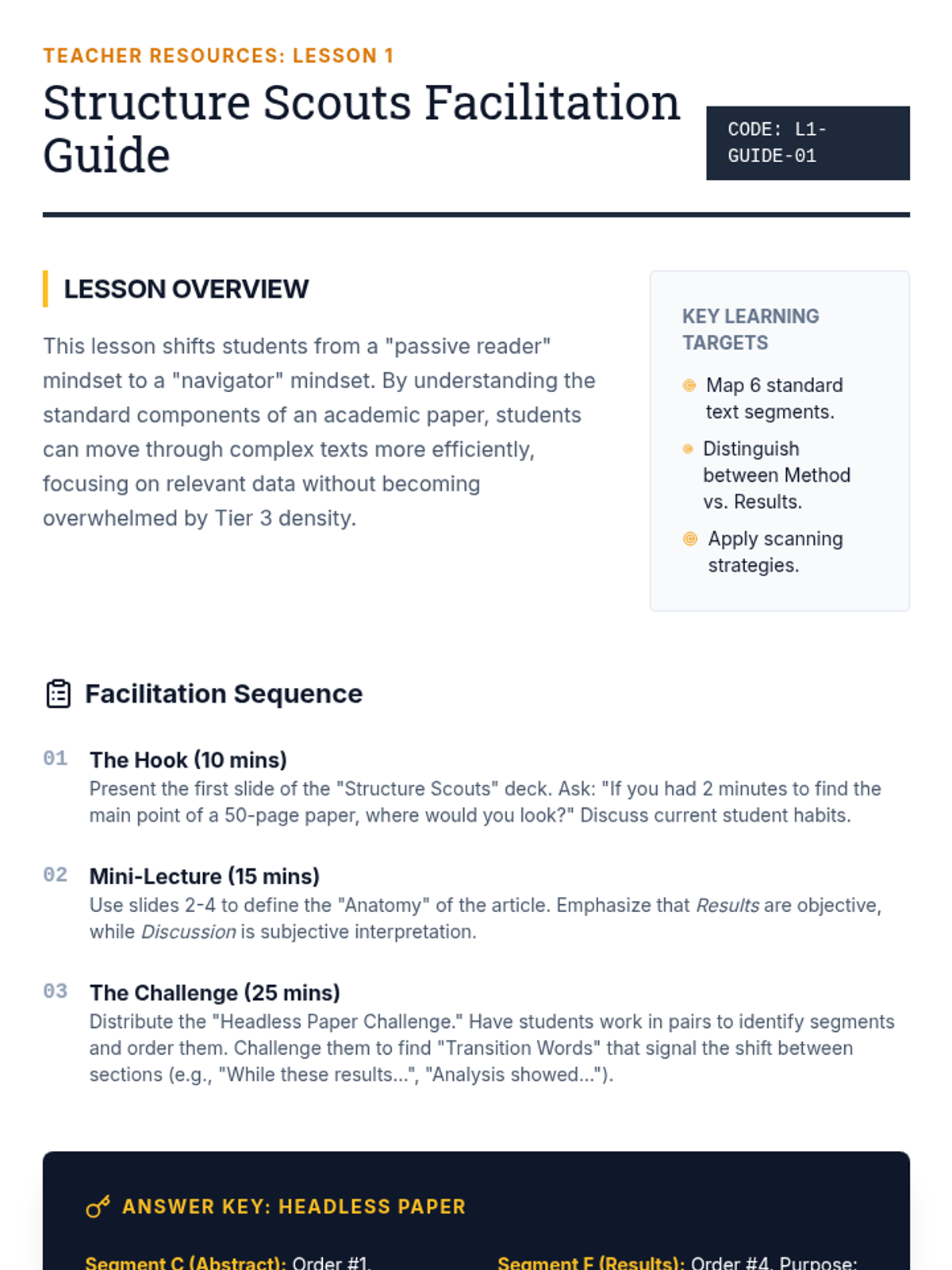 A comprehensive sequence for 10th-grade ELL students focused on deconstructing, analyzing, and synthesizing academic and technical texts. Students will move from identifying basic structures to evaluating logical consistency and producing formal abstracts.