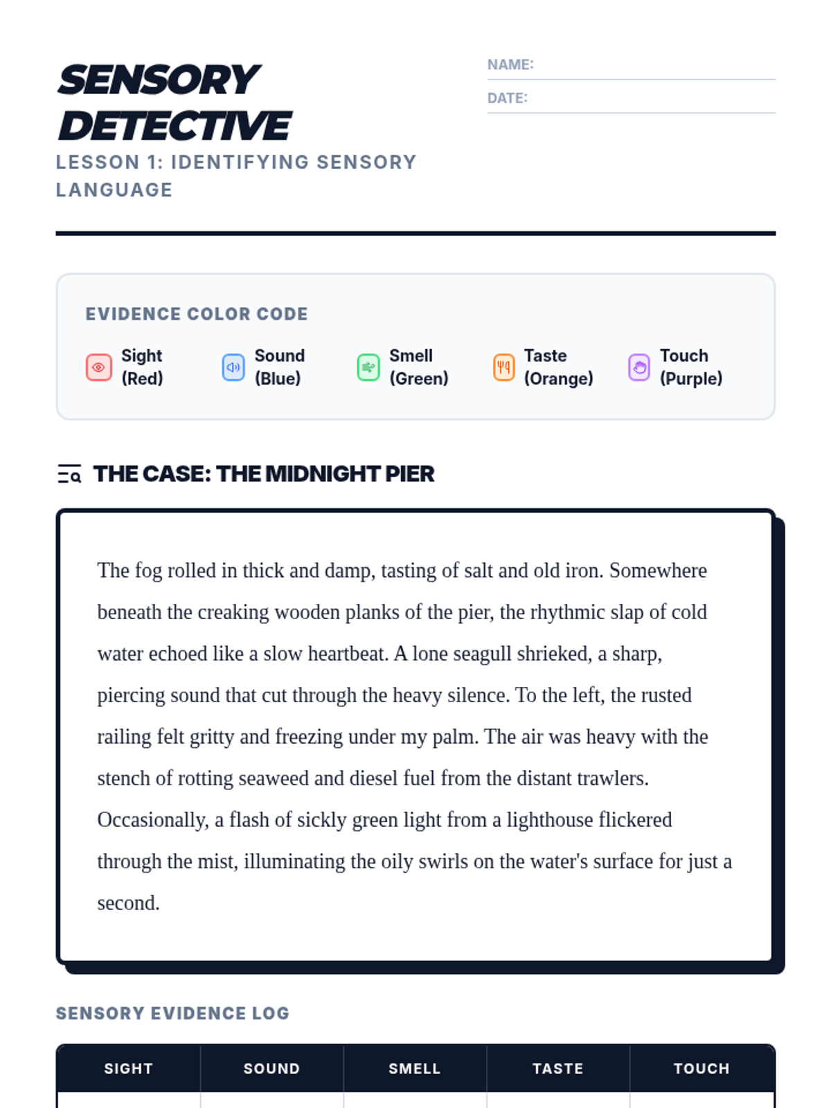 This sequence teaches 11th-grade students to use visualization as a comprehension strategy. By moving from identifying sensory words to constructing complex mental scenes and verbalizing them, students build a 'mental movie' that improves recall and engagement with narrative texts.
