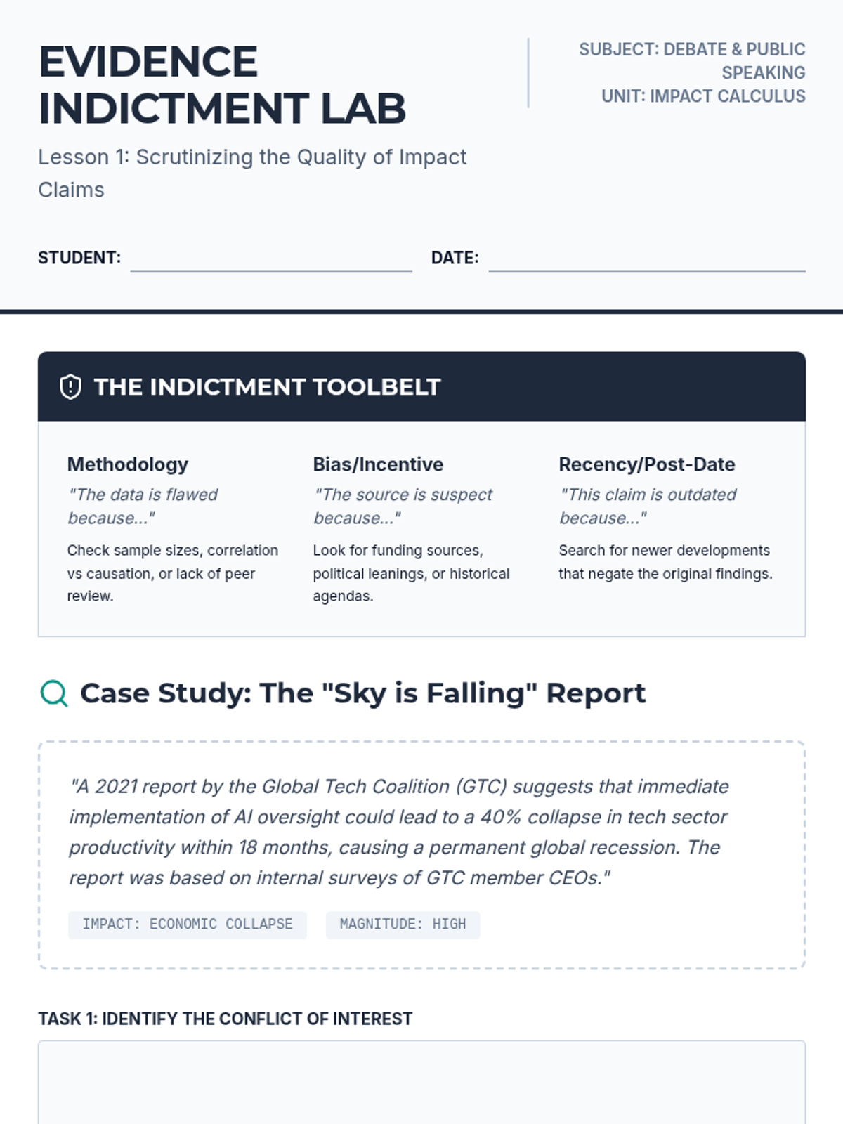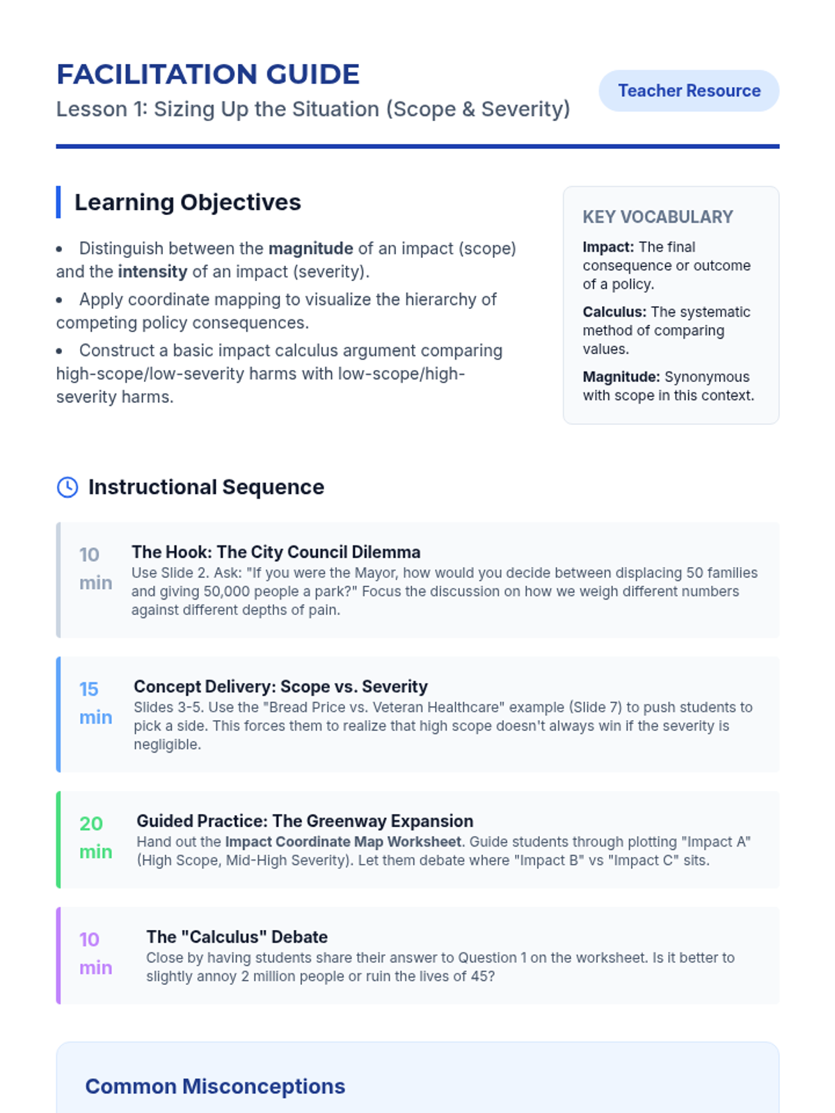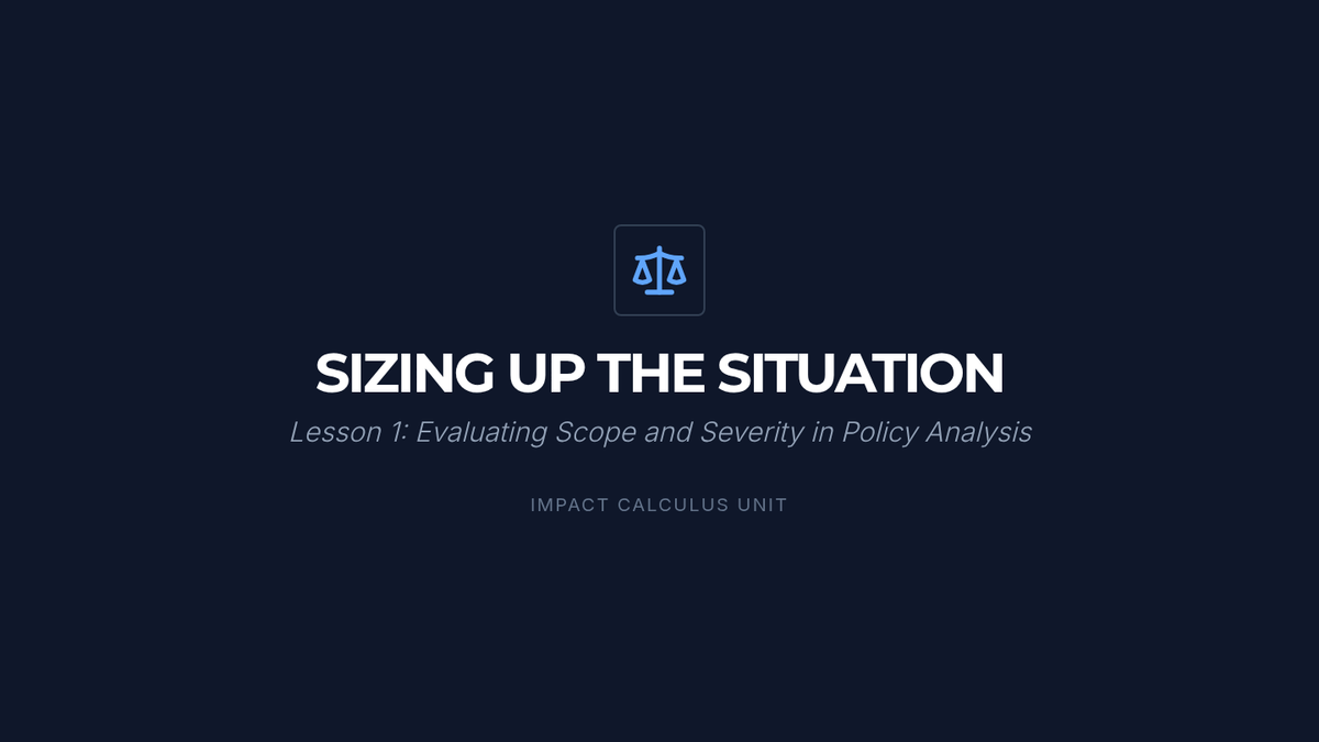 This sequence applies impact calculus to complex real-world policy decisions, moving beyond abstract debate theory to concrete analysis. Students examine case studies to understand how leaders weigh competing interests and culminate in a policy justification simulation.