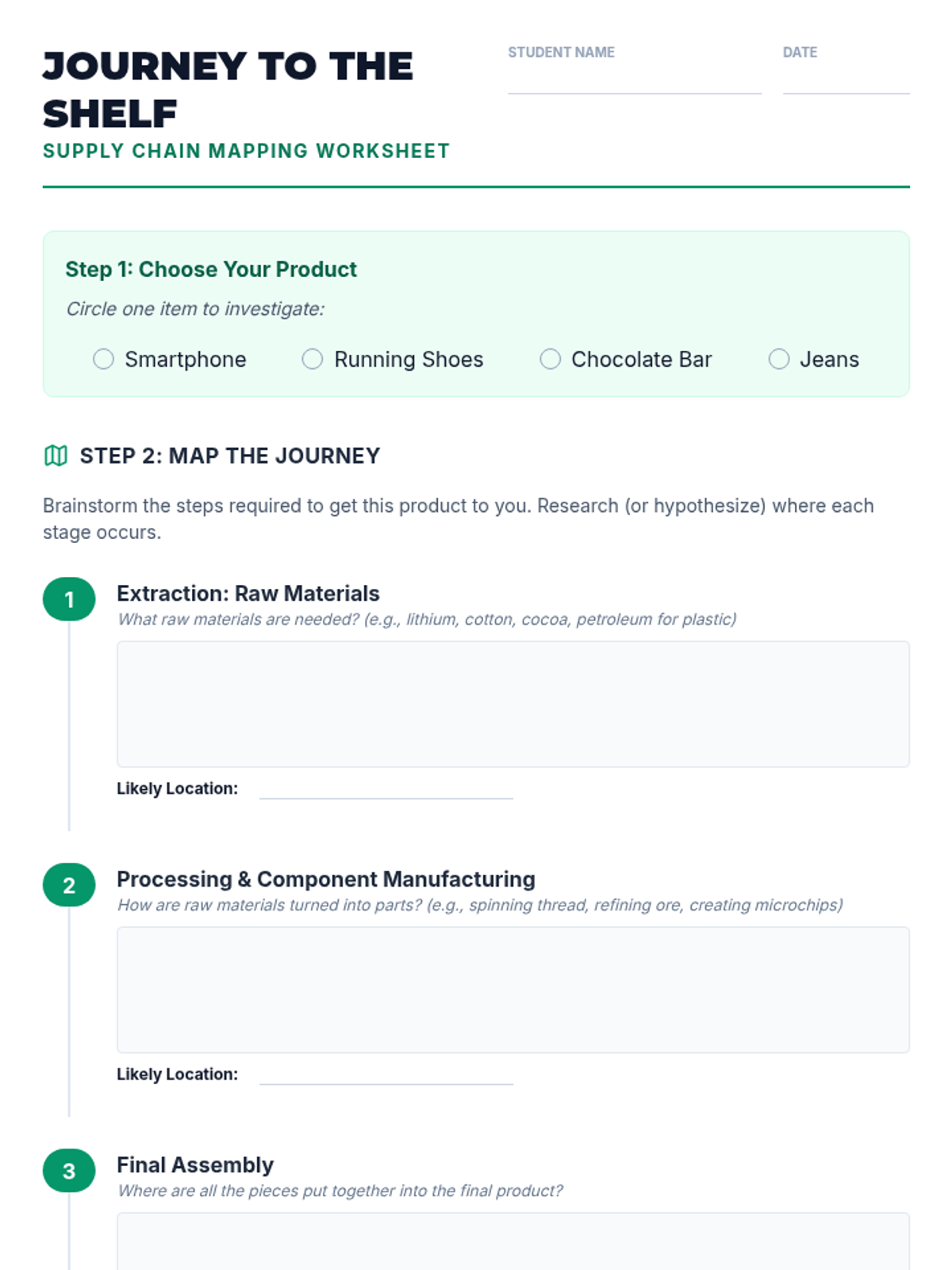 A 5-lesson sequence for 9th graders exploring the ethics and global impact of consumer choices. Students investigate supply chains, fast fashion, fair trade labels, and corporate responsibility to develop a personal framework for conscious consumption.