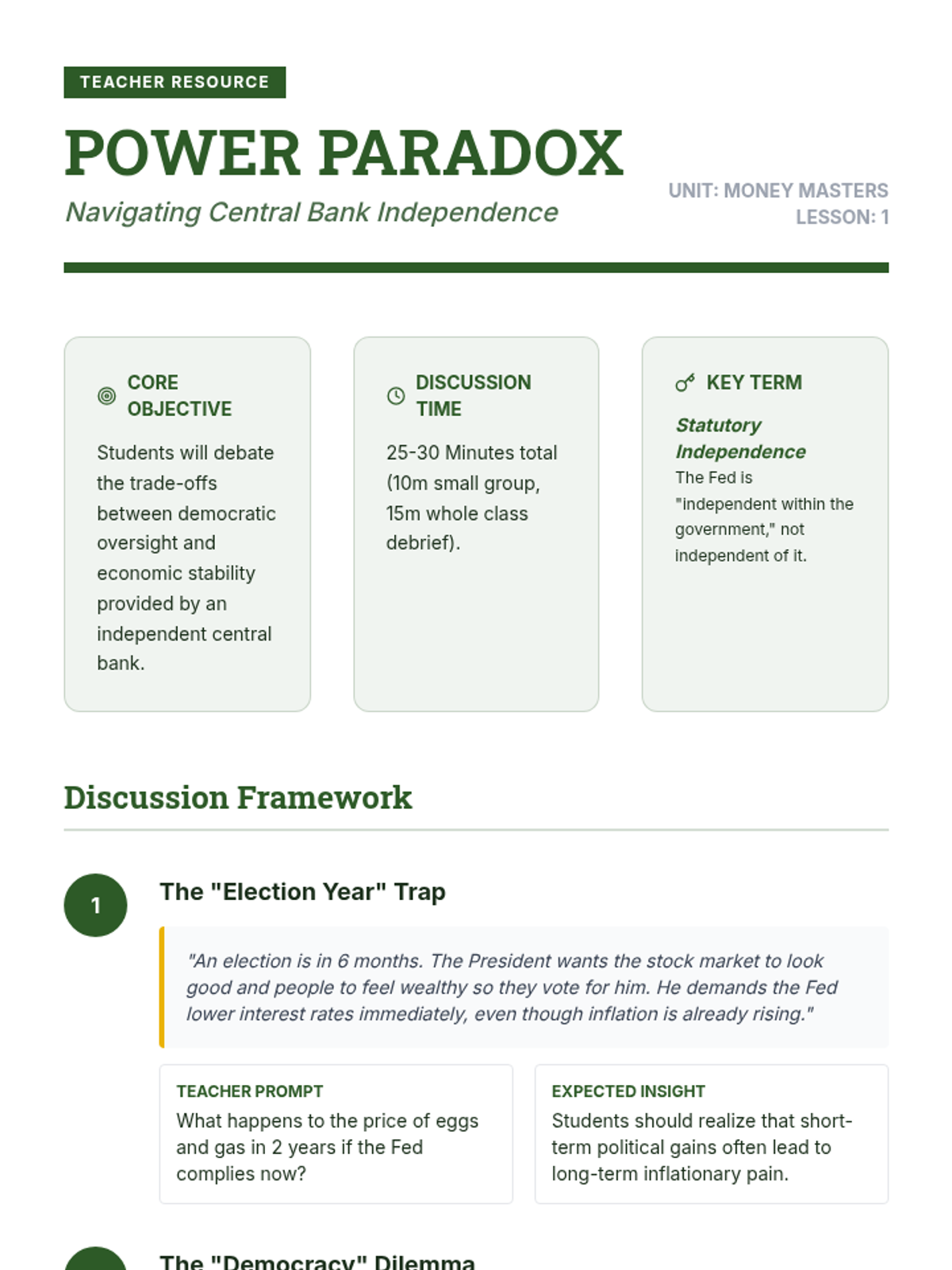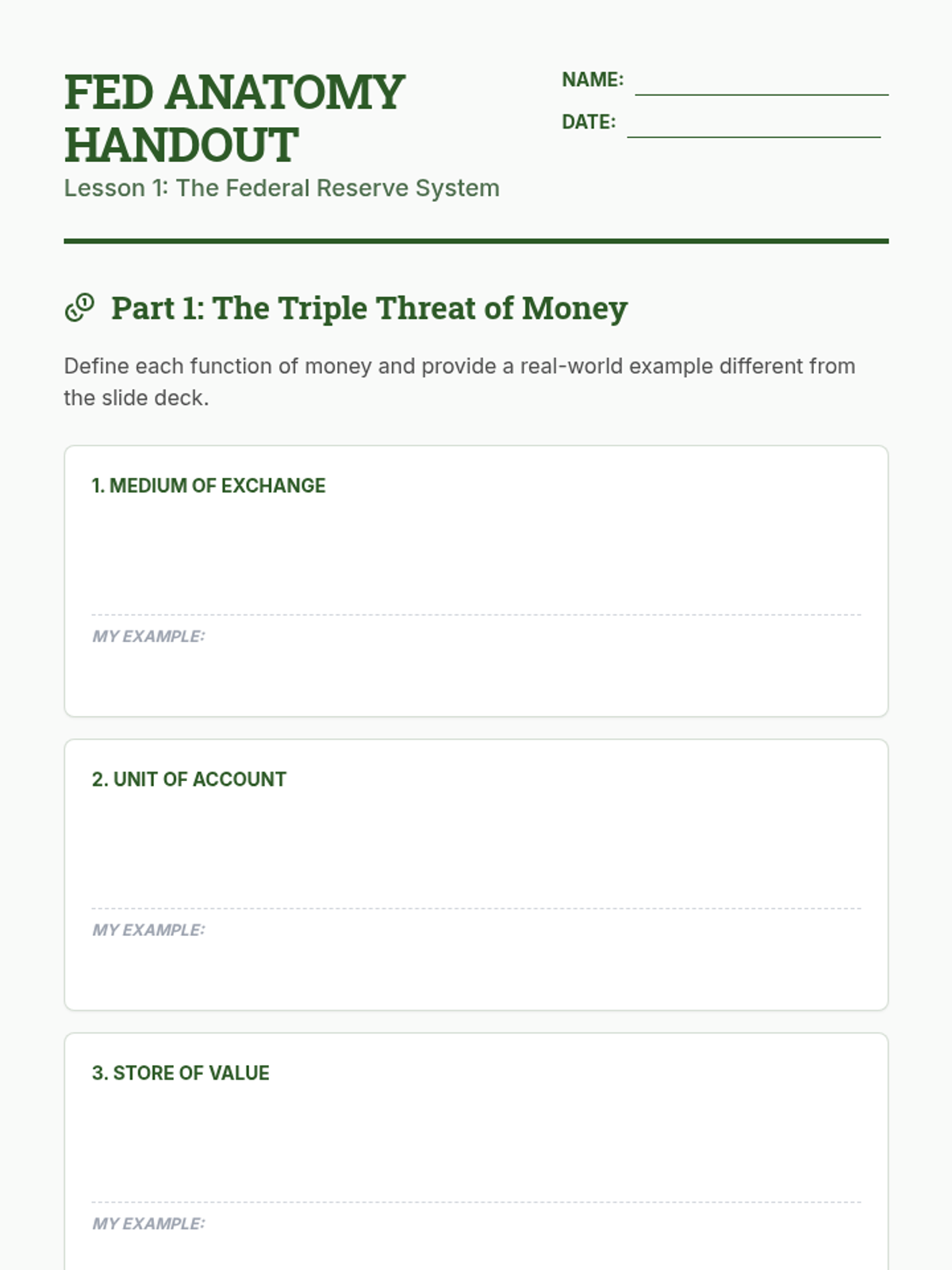 A comprehensive high school economics unit exploring the Federal Reserve, monetary policy tools, inflation, and the global and personal impact of central banking decisions.