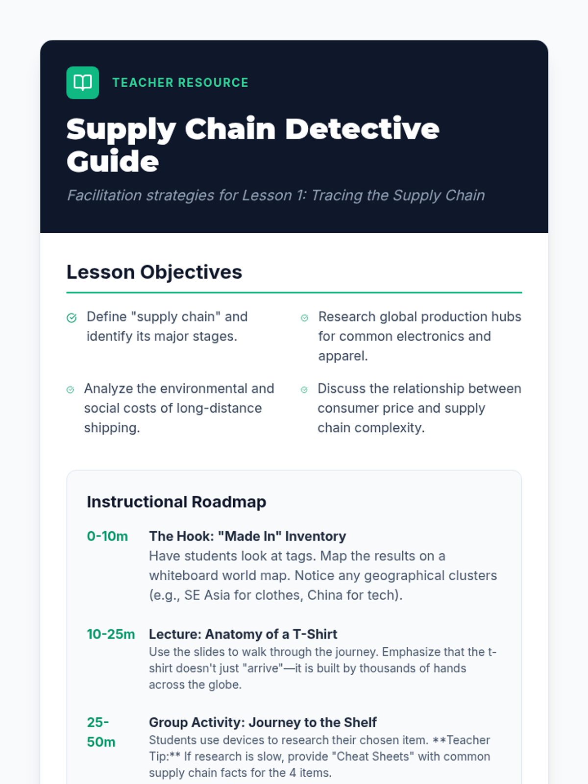 A comprehensive sequence for 11th-grade students focusing on labor trafficking and economic exploitation. Students will learn to identify indicators of forced labor, analyze global supply chains, understand the vulnerabilities of migrant workers, and recognize signs of exploitation in their own communities.