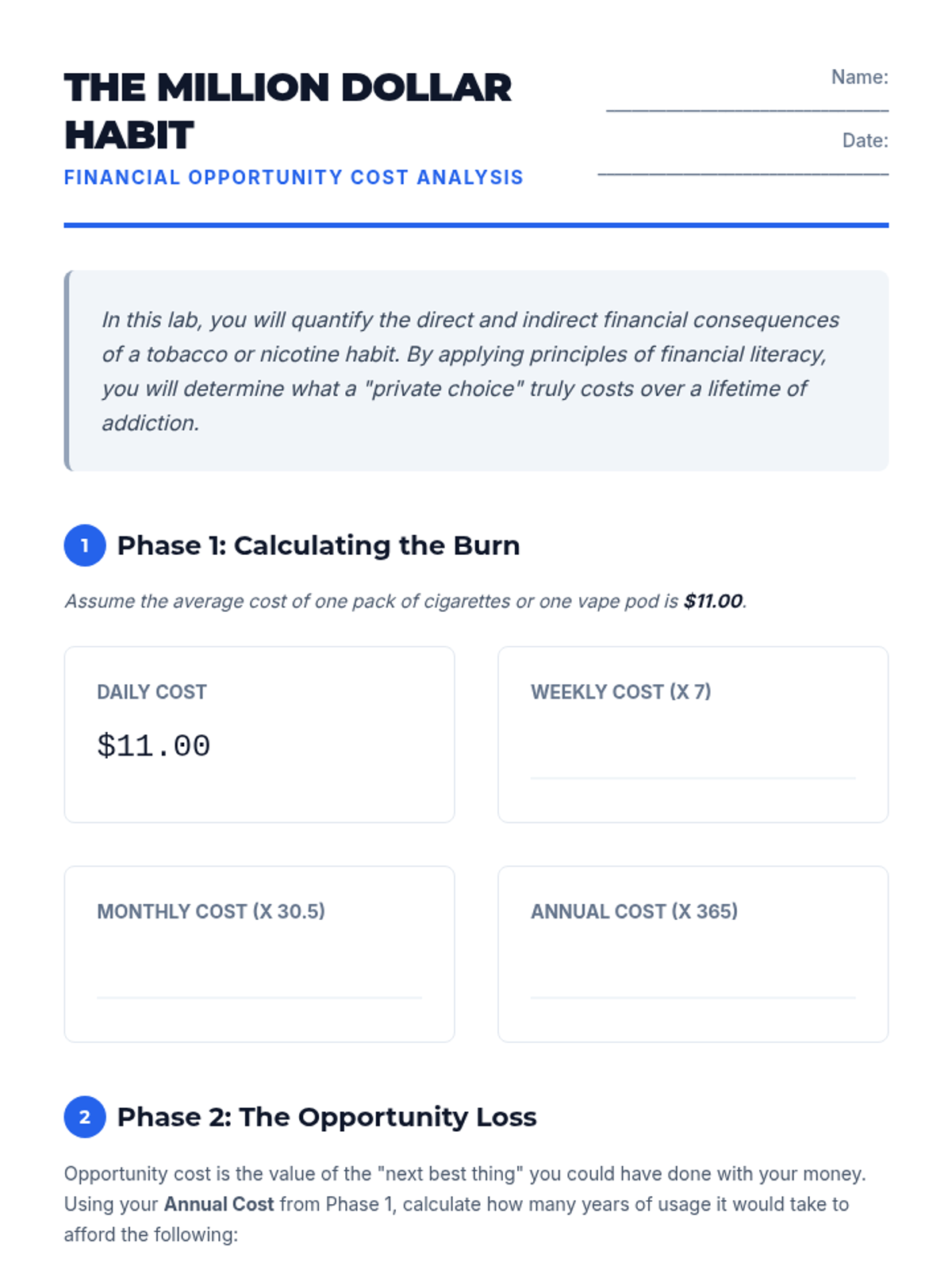 A high-level exploration of the macro-economic and environmental consequences of tobacco and e-cigarette use. Students analyze financial data, environmental toxicity, and public health policy to develop a comprehensive understanding of addiction's societal burden.