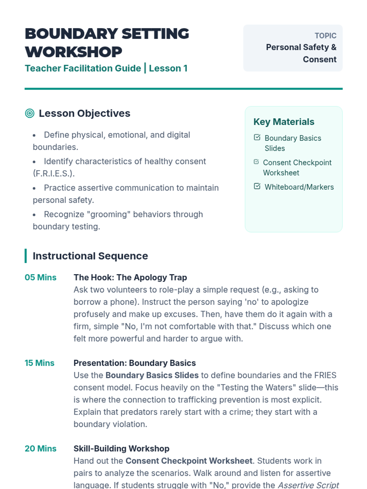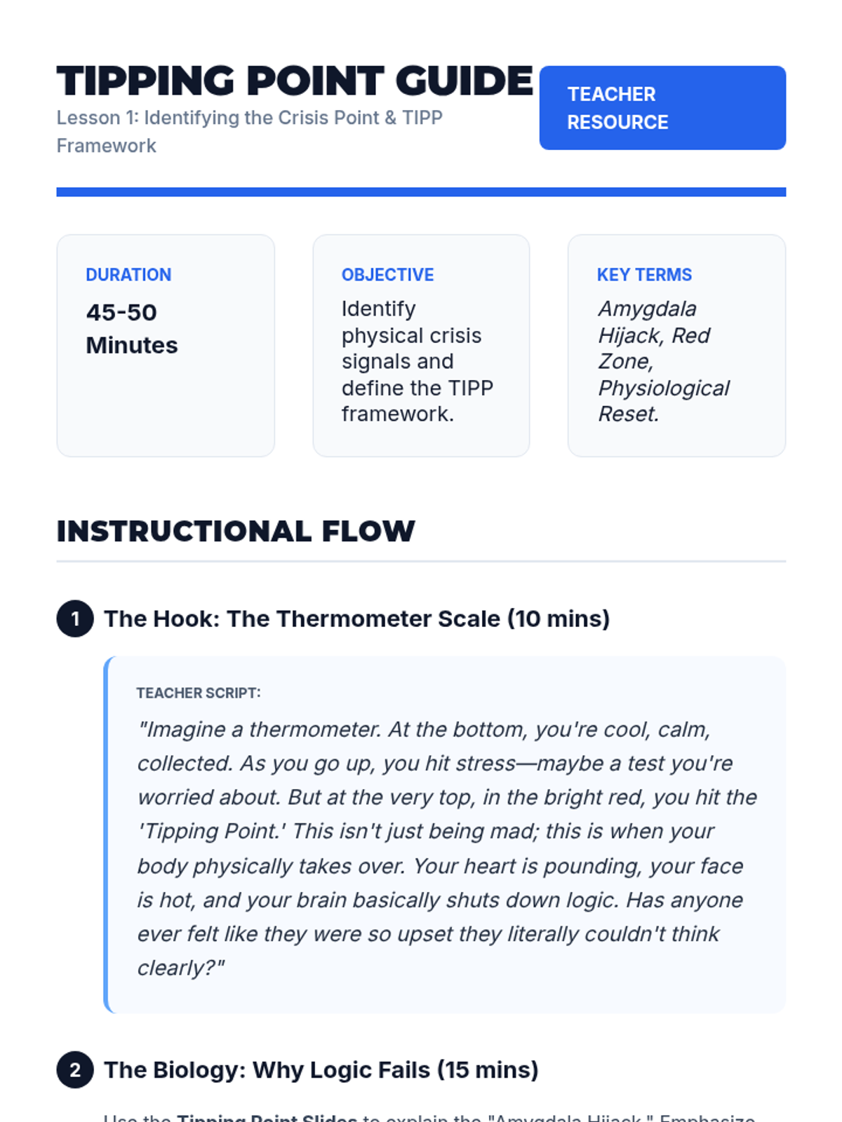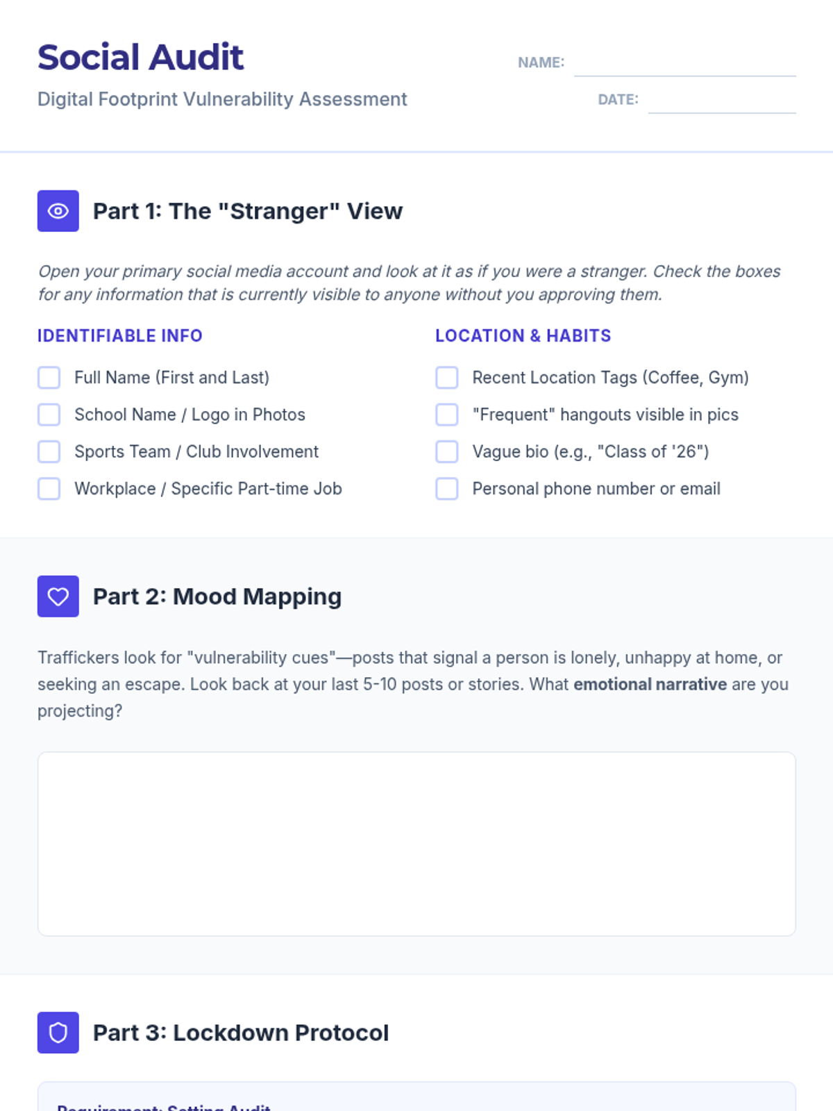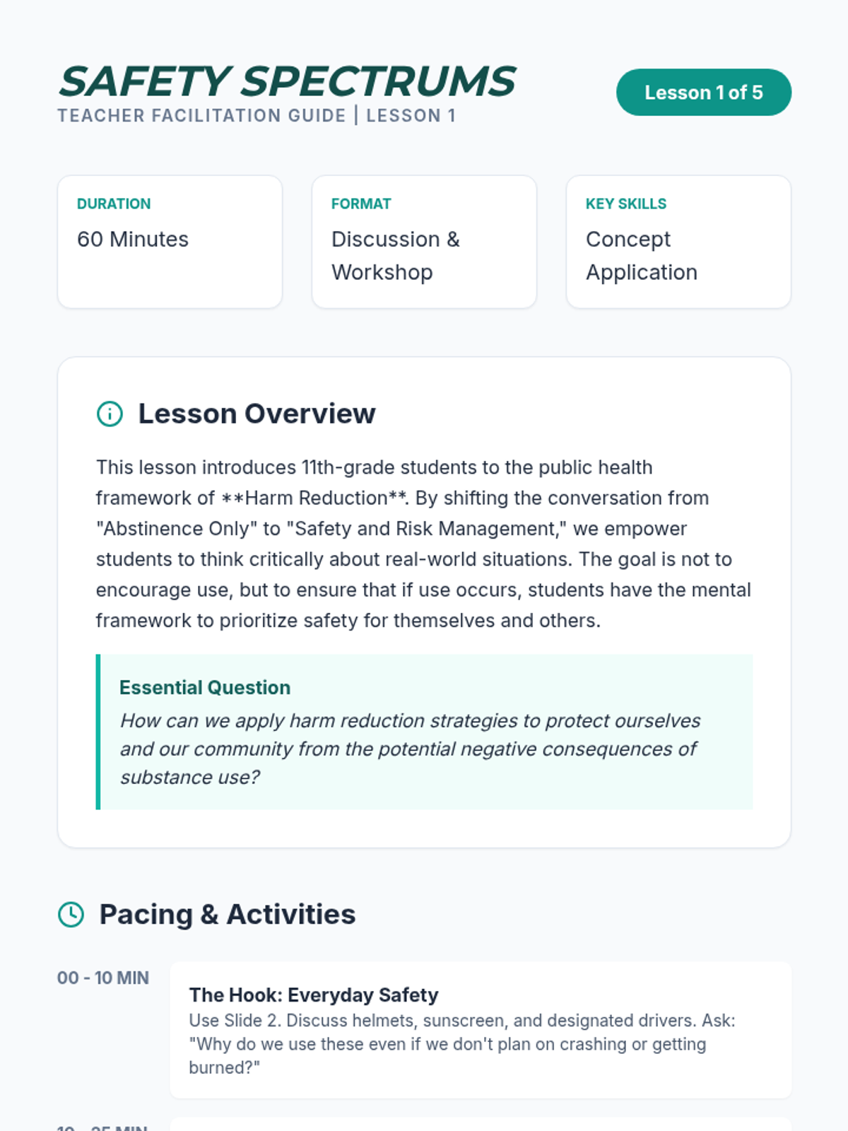 Identifies mental health crises and suicide warning signs while developing personal safety plans and grounding techniques. Equips users with peer gatekeeper skills and direct pathways to professional crisis resources and hotlines.