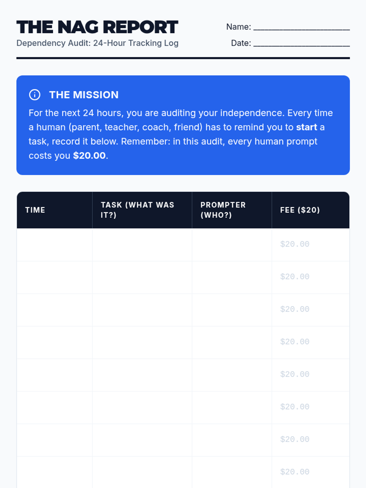 A 5-lesson sequence for 11th-grade students focused on transitioning from human-led prompts to digital, self-managed systems. Students audit their current dependencies, learn to program time and location-based triggers, and build a backup plan for technology failures to achieve greater independence.