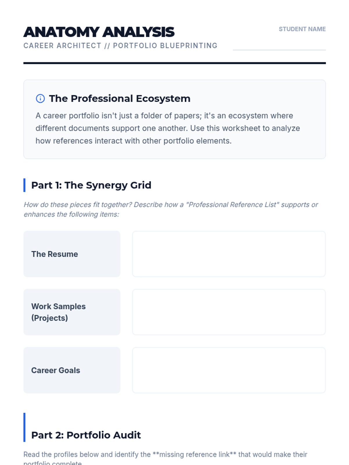 A comprehensive sequence for 12th-grade students to master the art of identifying, selecting, and formatting professional references. Students move from brainstorming potential advocates to producing a branded, accurate reference sheet ready for employment applications.
