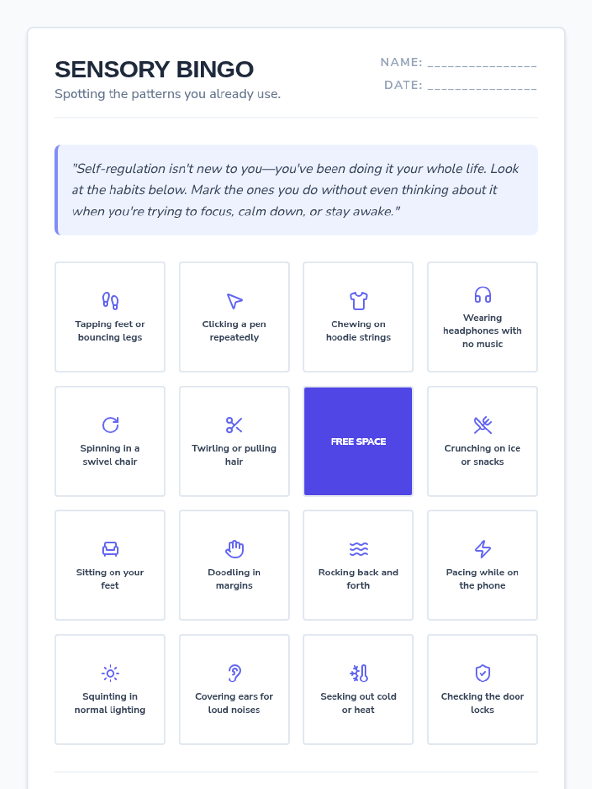 This sequence guides 12th-grade students through identifying their unique sensory profiles and creating a customized 'Regulation Toolkit' of movement strategies for the transition to adulthood. Students test high-intensity and slow-flow techniques to build a practical, portable plan for independent living, college, or career environments.