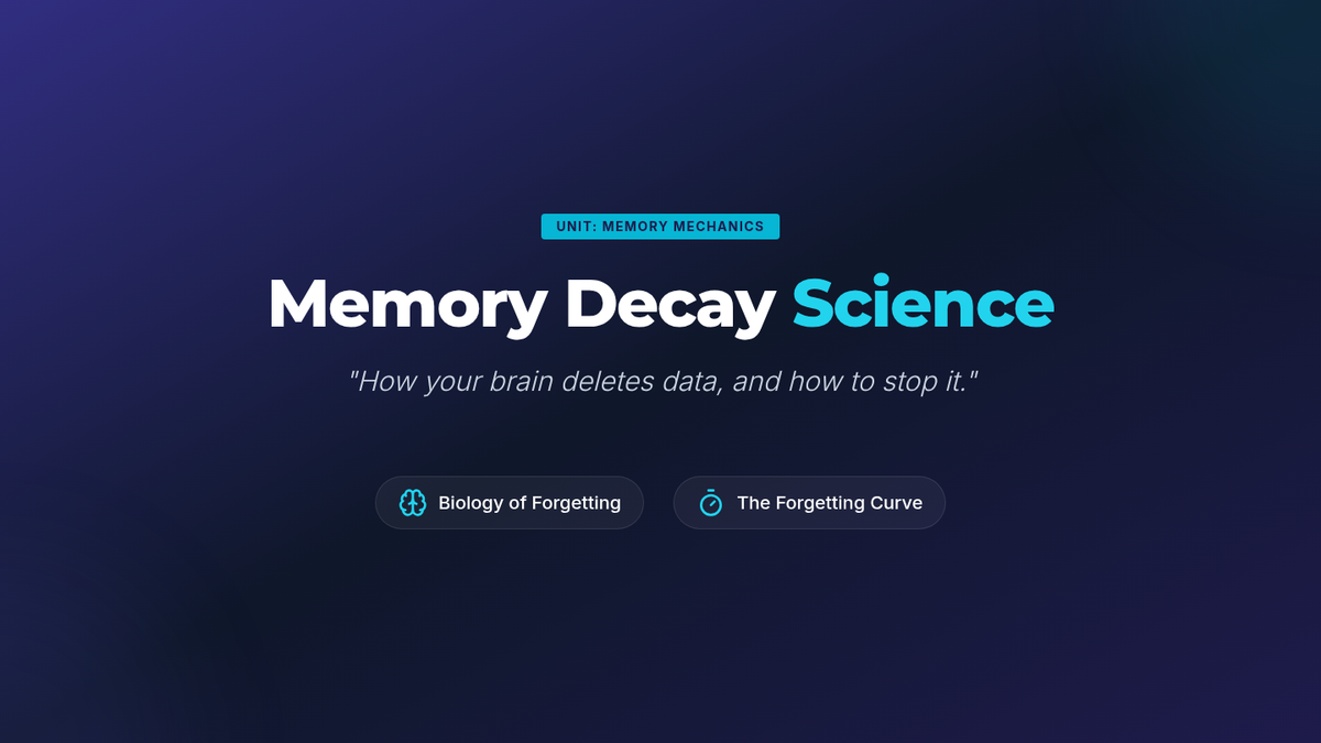 An inquiry-based exploration into the neuroscience of memory, focusing on the Forgetting Curve and how spaced repetition can 'hack' the brain for long-term retention. Students move from understanding memory decay to designing their own efficient study schedules based on biological principles.