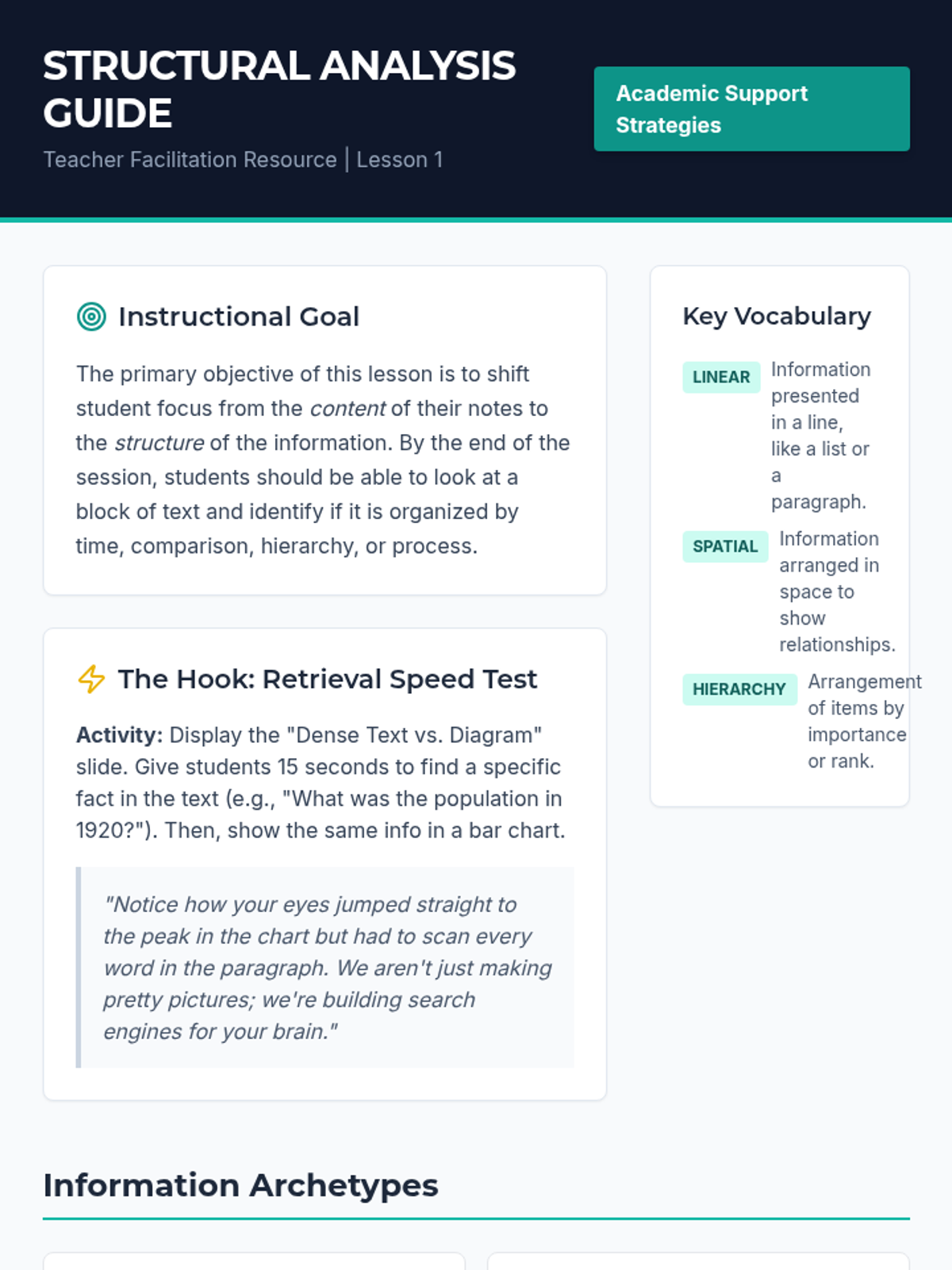 A comprehensive workshop series for 12th-grade students to master visual scaffolding techniques, reducing cognitive load and enhancing long-term retention during academic tasks. students transition from understanding cognitive science to real-time application of hierarchical, sequential, and comparative note-taking structures.