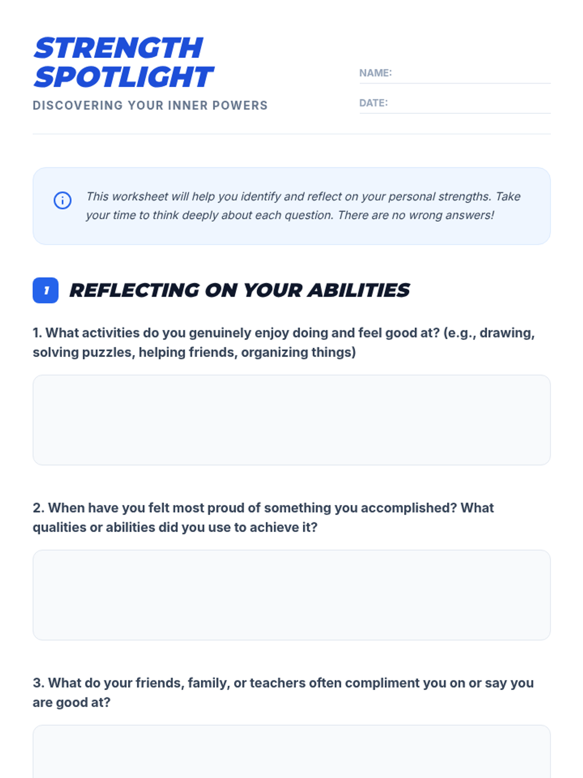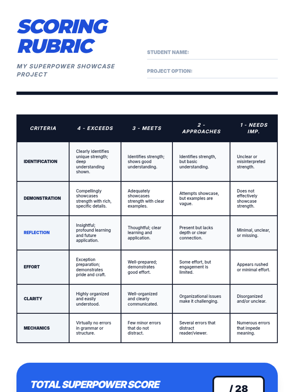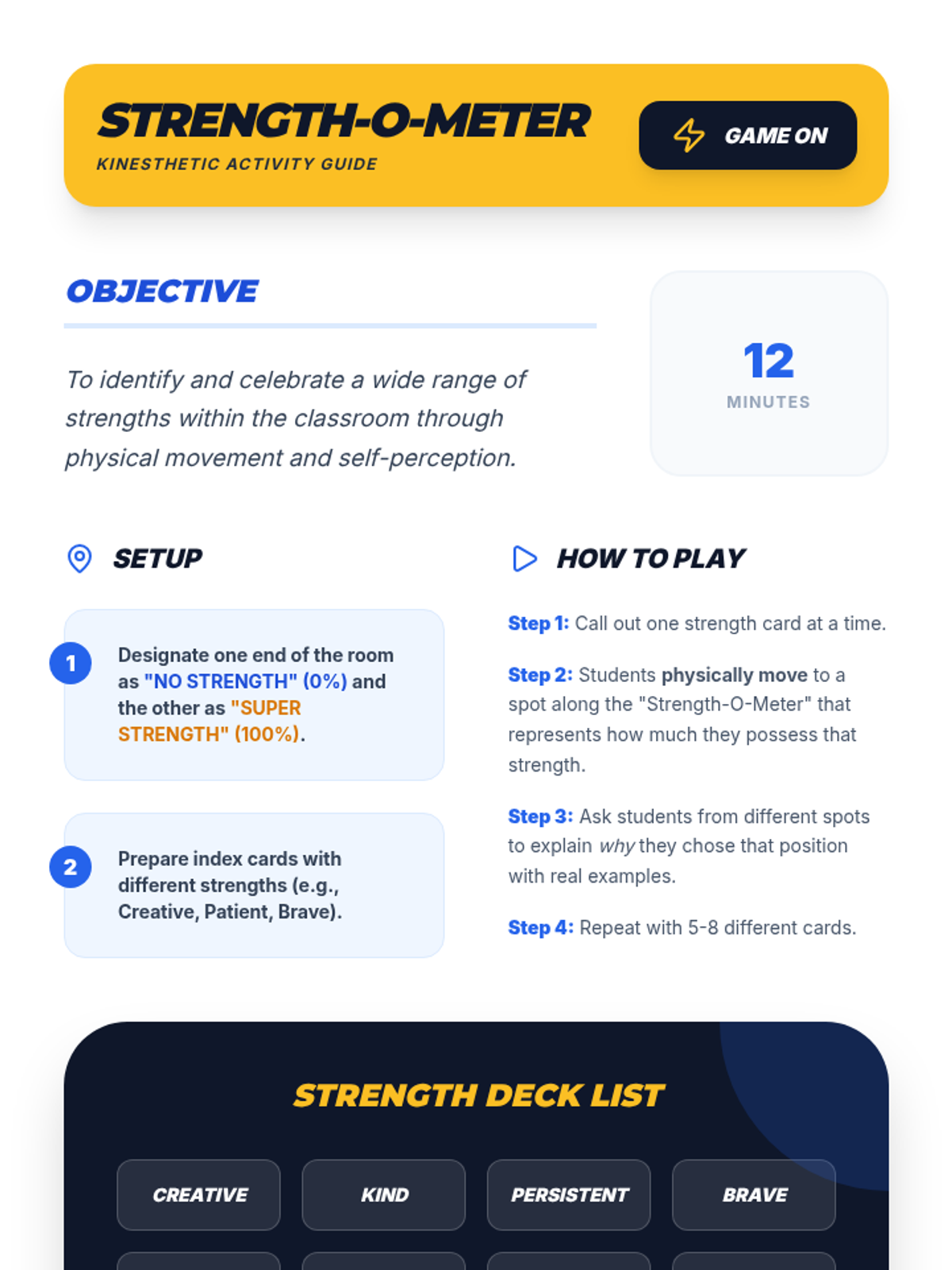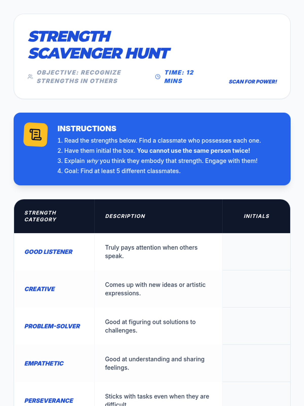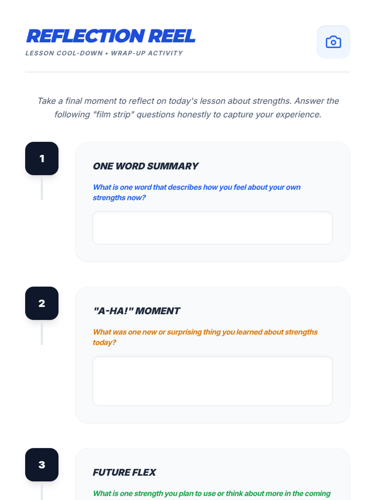 A comprehensive two-part sequence designed for high school students to identify, understand, and leverage their personal strengths. Through interactive activities, self-reflection, and collaborative discussion, students discover their 'inner superpowers' to boost confidence and academic success.