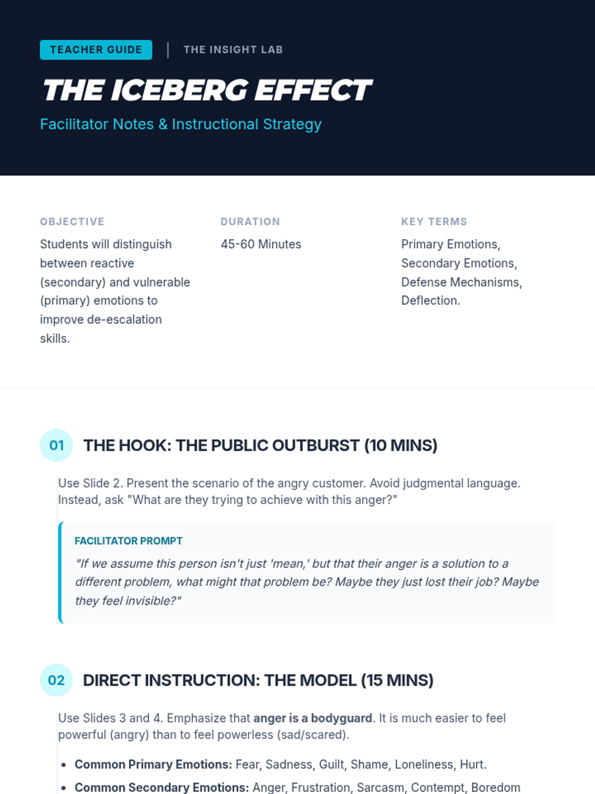 A high-intensity simulation-based unit for 12th graders focusing on situational awareness and the early detection of behavioral escalation in dynamic environments. Students take on the role of behavioral analysts to identify subtle cues before they lead to crisis.
