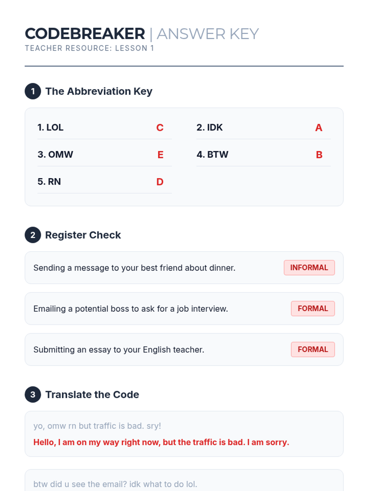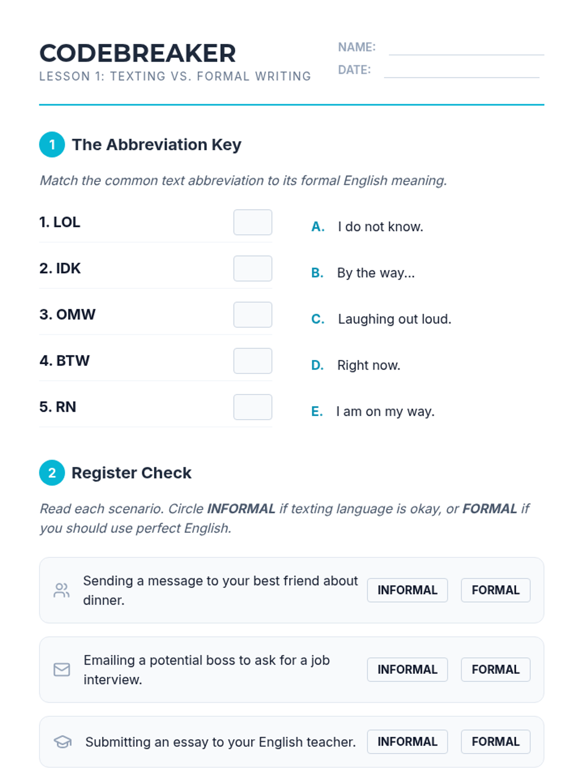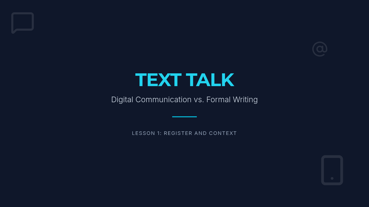 This 12th Grade Beginner English sequence explores the nuances of digital literacy, focusing on reading and interpreting text messages, emails, and online communications. Students will master professional email structure, decode common abbreviations, analyze digital tone, and develop critical skills to identify online scams and phishing attempts.