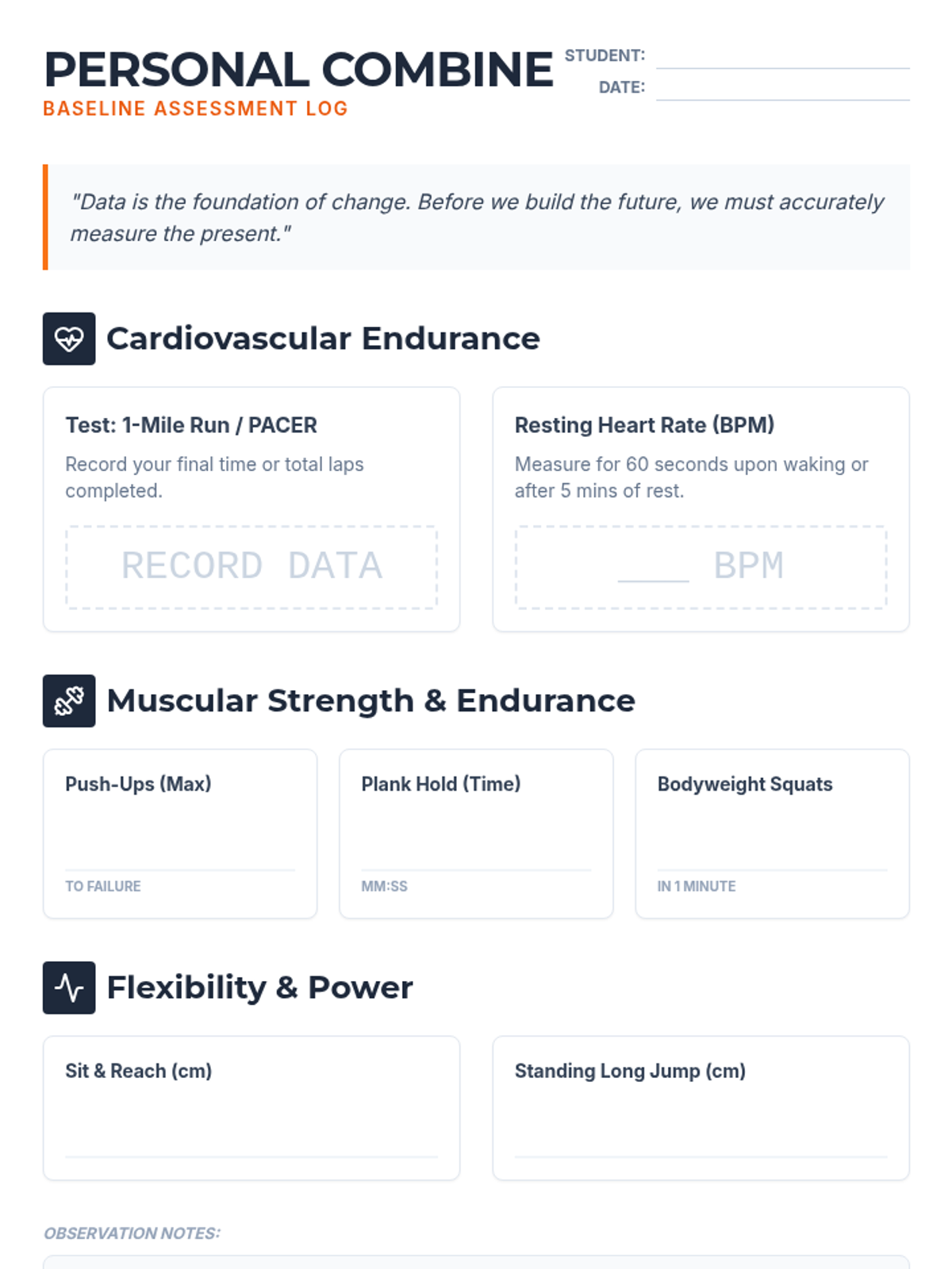 Principles of muscular strength, endurance, and cardiovascular conditioning. Develops skills for setting personal fitness goals while incorporating flexibility and stretching techniques for injury prevention.