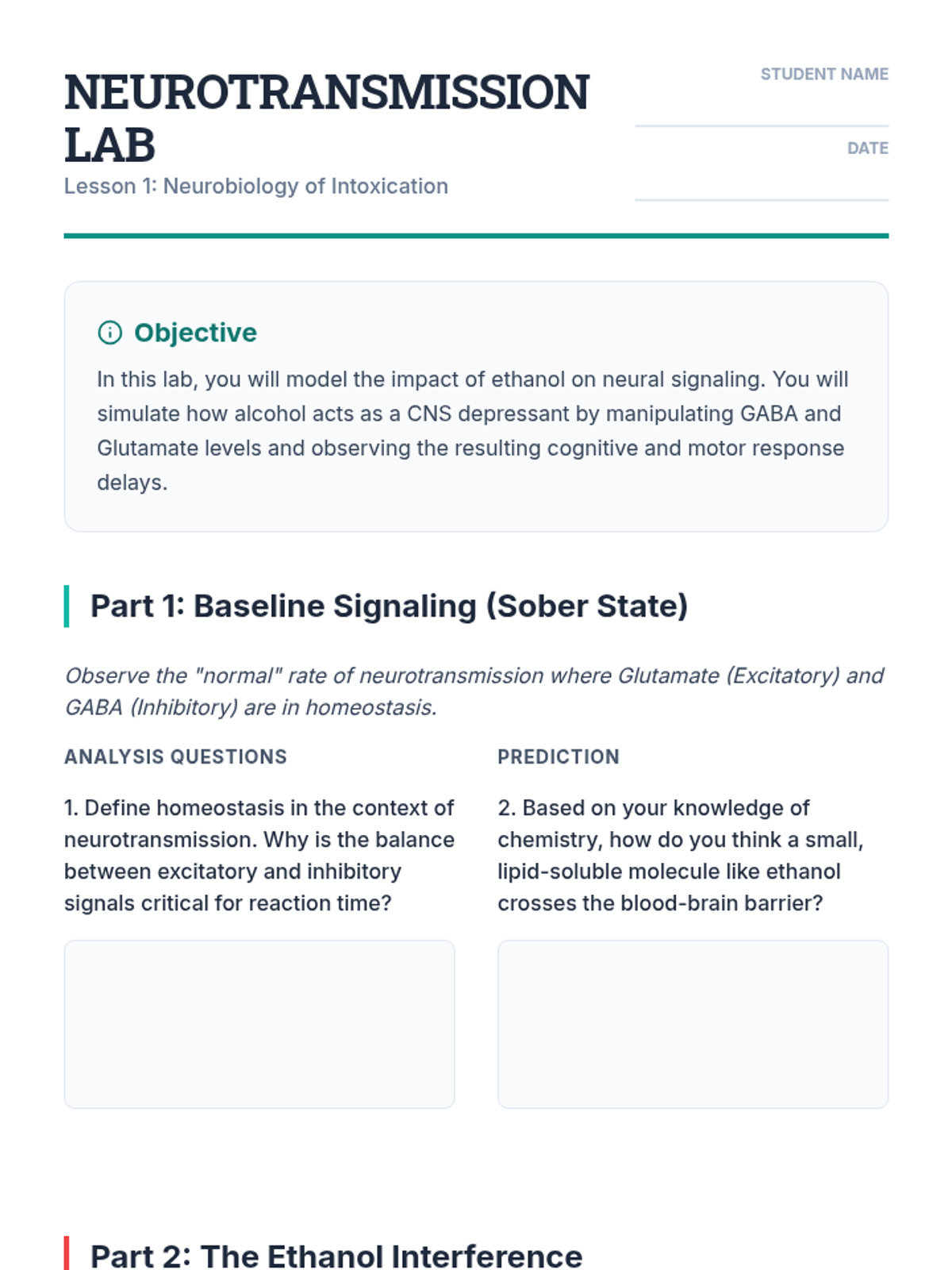 This sequence provides a rigorous, data-driven exploration of alcohol's impact on human biology, reaction physics, and legal frameworks. Designed for 11th-grade students, it moves beyond basic awareness to analyze the specific neurobiological mechanisms of impairment and the complex legal consequences of substance use.