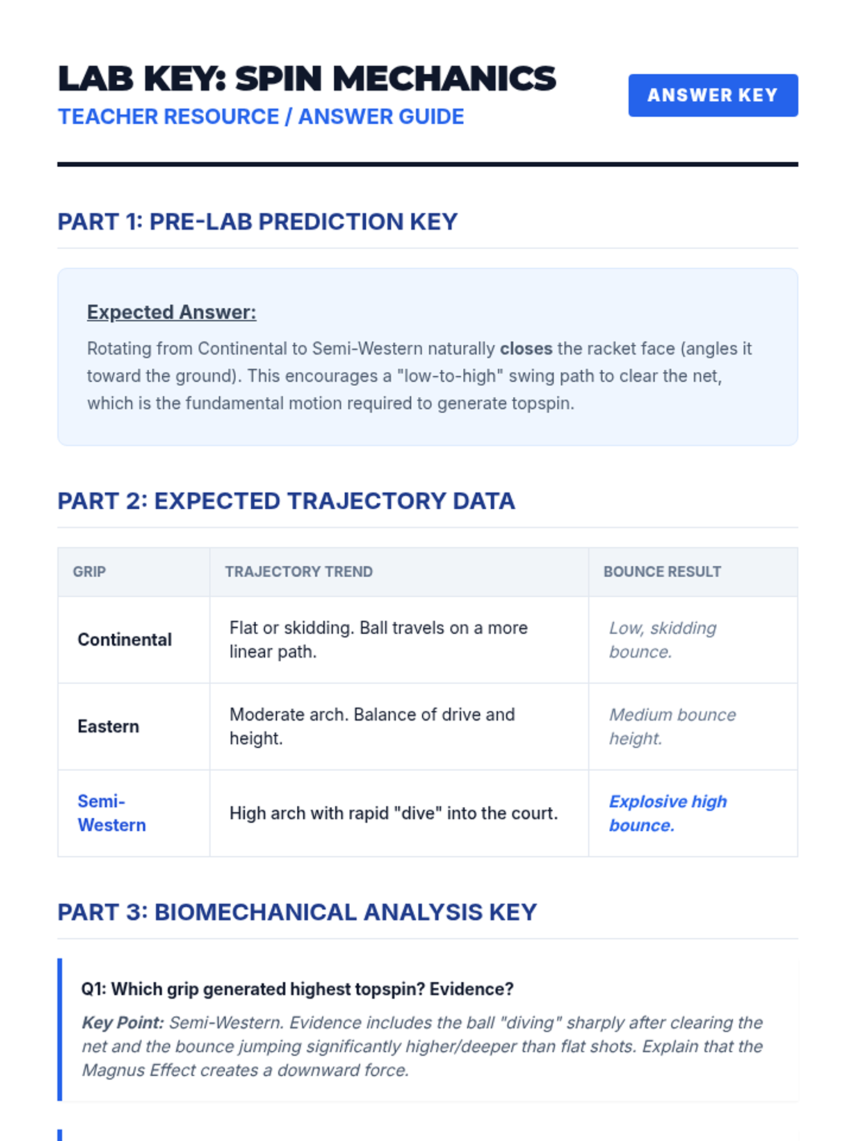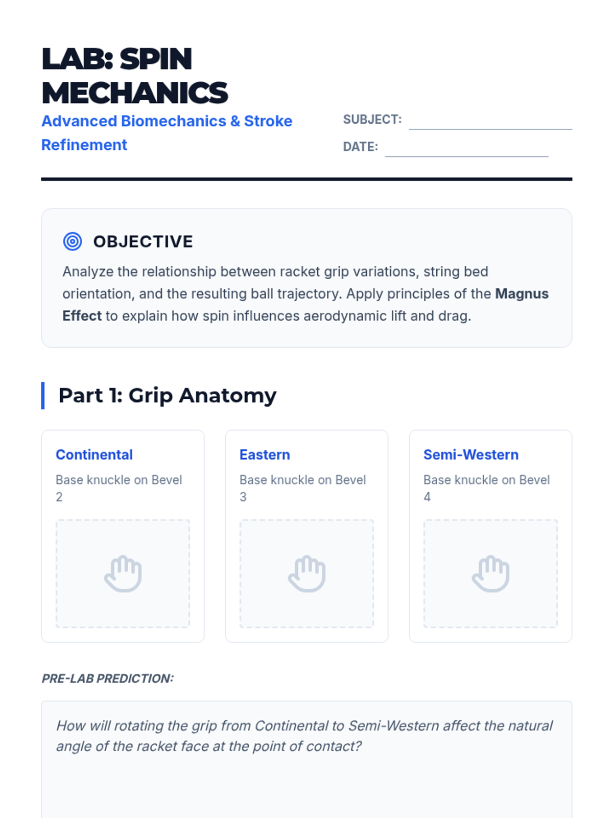 A high-performance physical education unit for 12th graders exploring the biomechanics and physics of racket sports, including tennis, badminton, and pickleball. Students analyze the kinetic chain, spin physics, and agility patterns to refine their technical execution through scientific inquiry and video analysis.
