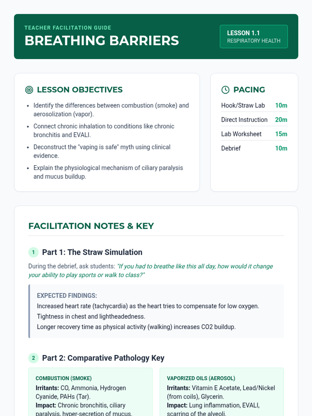 A comprehensive 5-day unit designed to educate students on the physiological effects of vaping and provide actionable, healthy coping mechanisms like deep breathing and mindfulness.