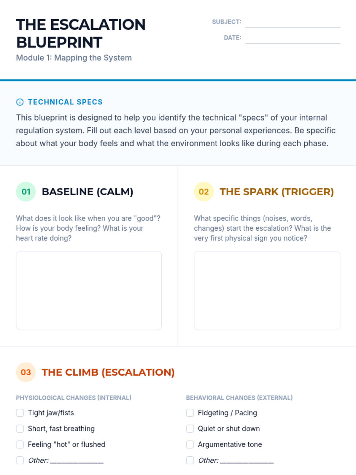 Personal Trigger IdentificationIdentifies physiological and emotional cues linked to specific stressors. Equips learners with self-monitoring tools to anticipate reactions and apply proactive coping strategies.