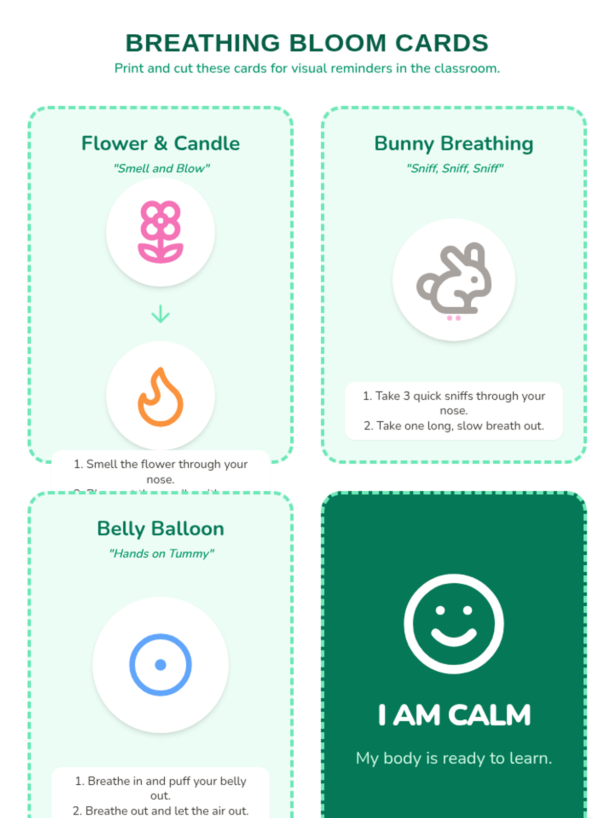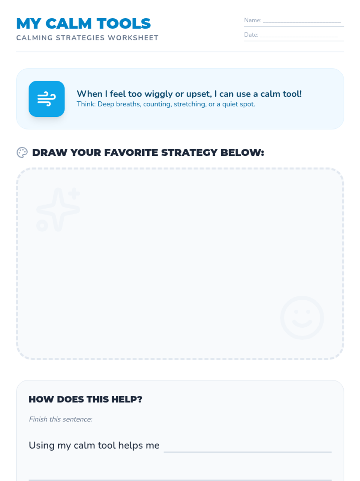 Students construct a physical or mental 'toolbox' of calm-down strategies to replace aggressive or disruptive behaviors. The lessons introduce specific coping mechanisms such as deep breathing, sensory grounding, and movement breaks, culminating in a personalized self-regulation plan.