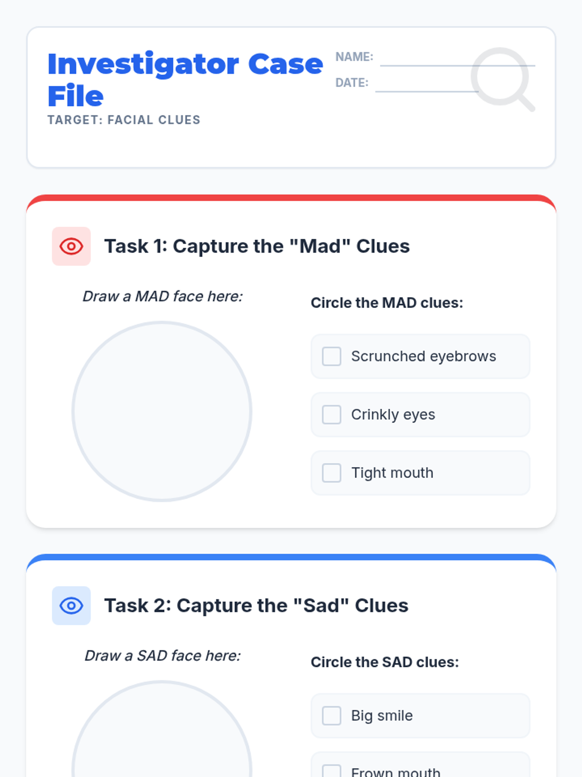 A series of lessons focused on social-emotional skills, identifying behaviors, and responding appropriately to social challenges using a 'Social Detective' theme.