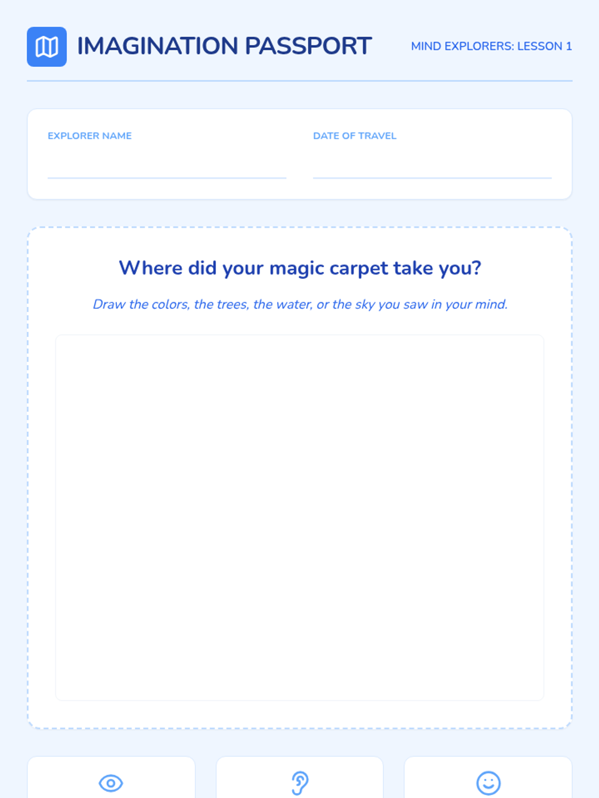 A series of 5 lessons for 1st graders focused on guided imagery and visualization. Students explore their imaginations to build mental safe spaces, release worries, and connect with their inner sense of calm.