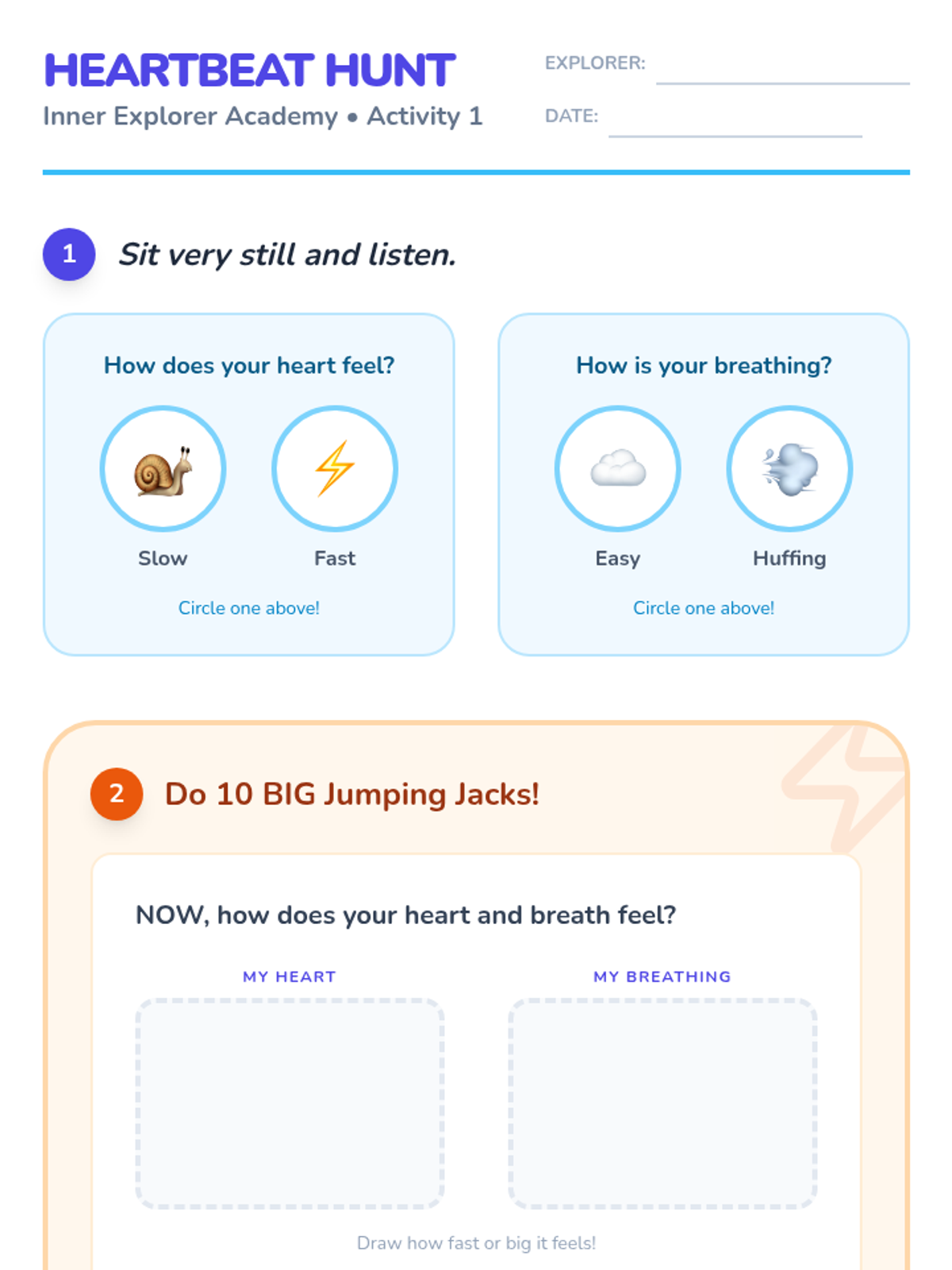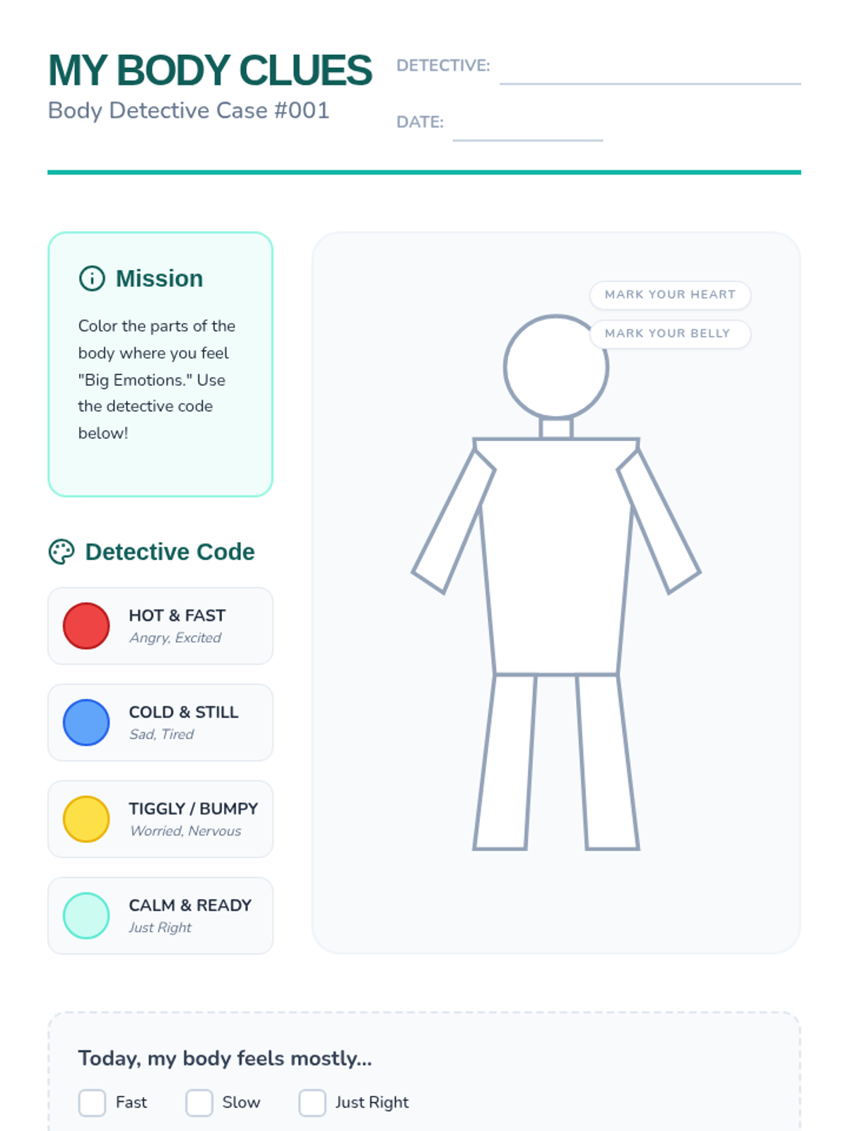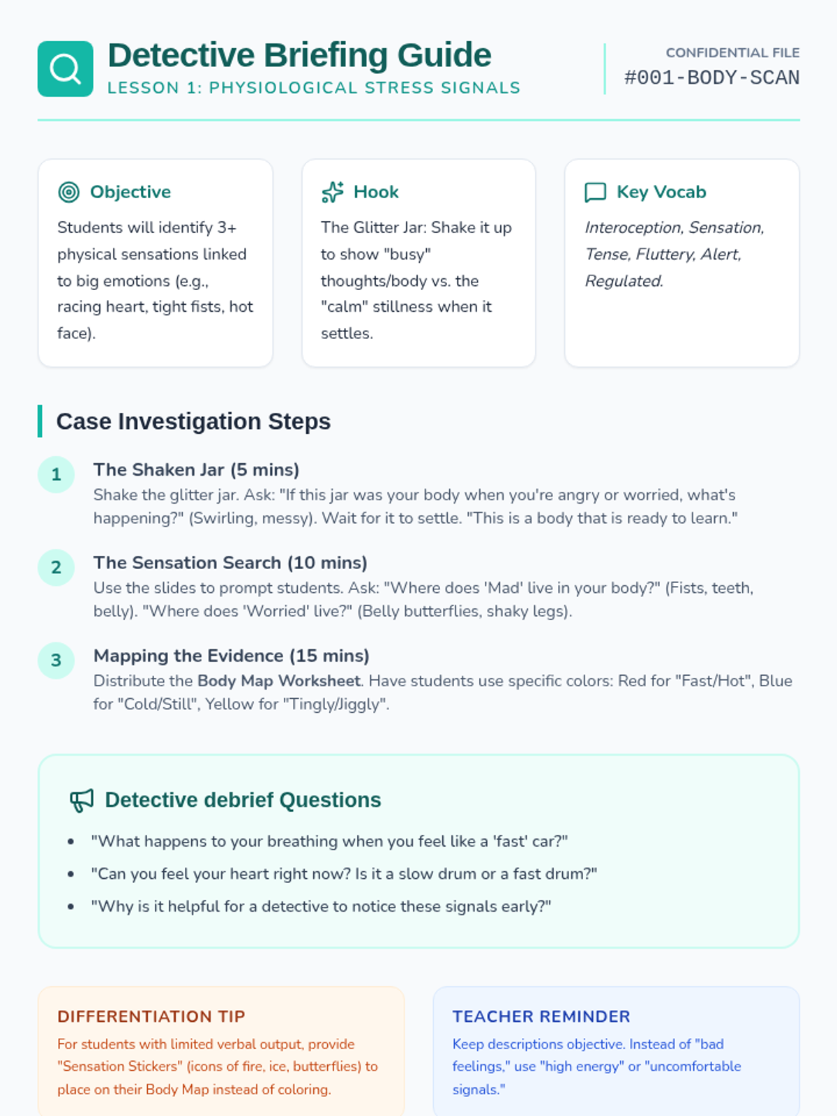 A comprehensive sequence for 1st-grade students to develop interoceptive awareness. Students learn to monitor internal signals like heart rate, energy levels, and temperature to better understand their emotions and advocate for their needs.