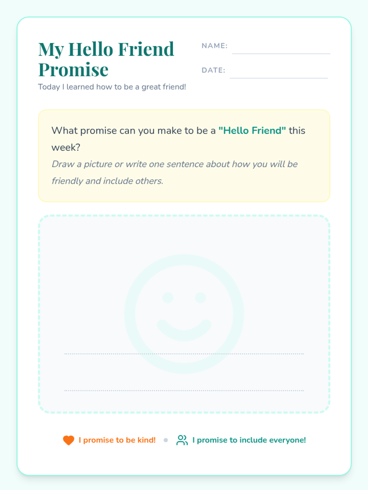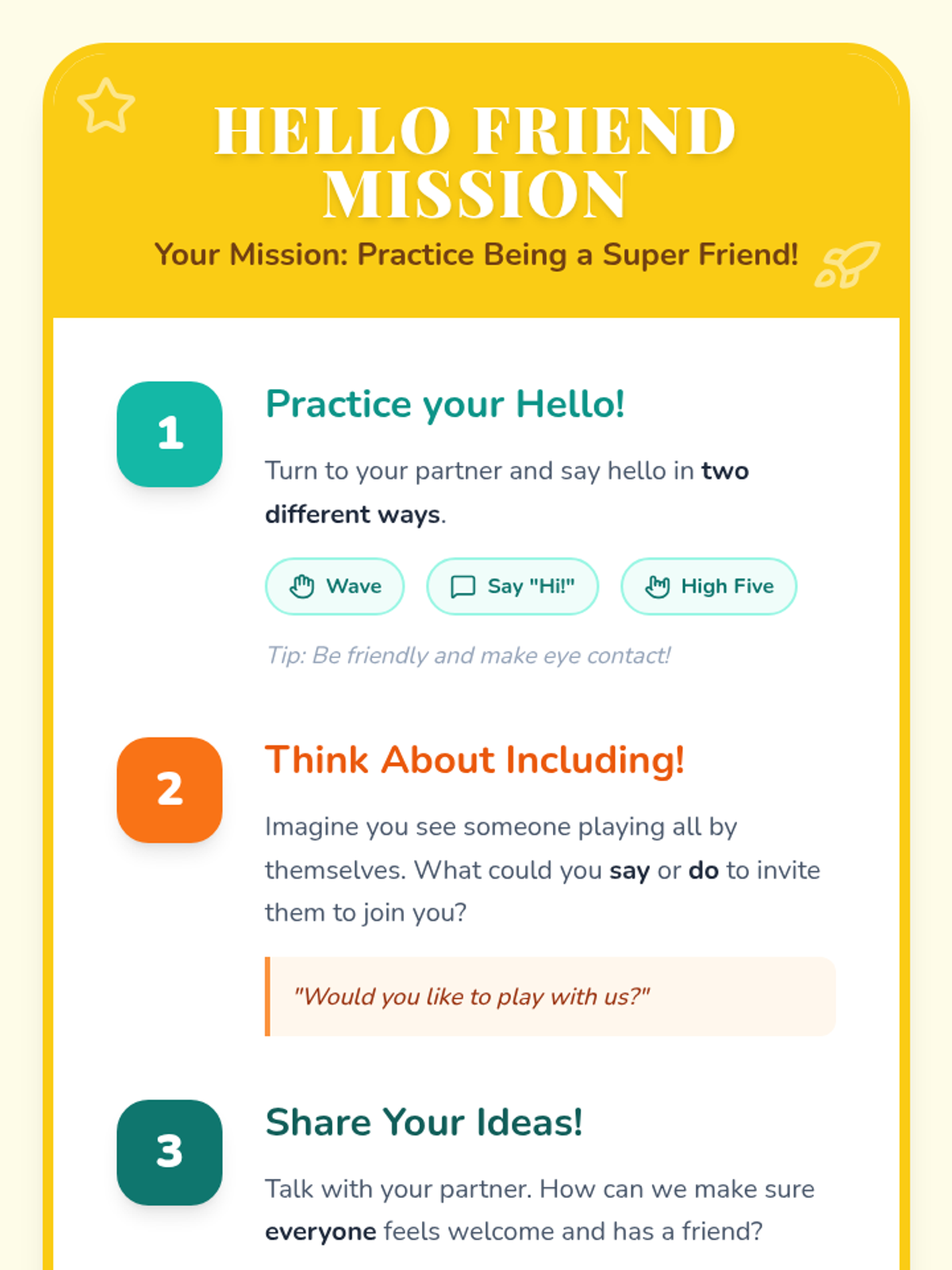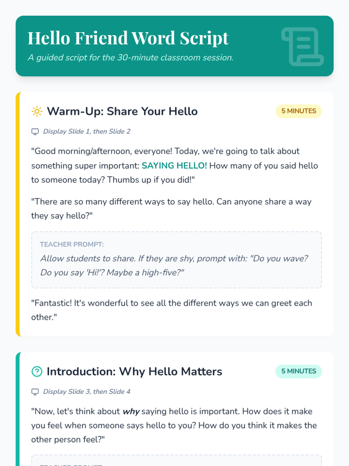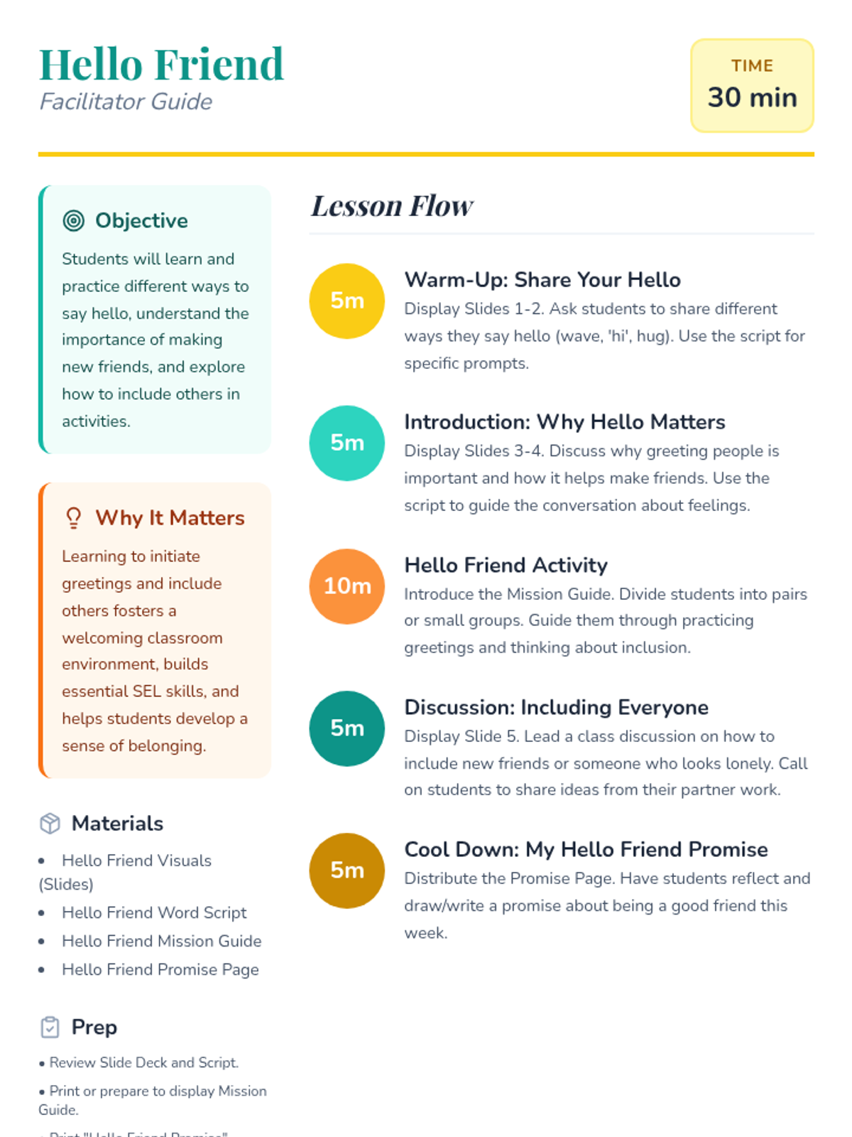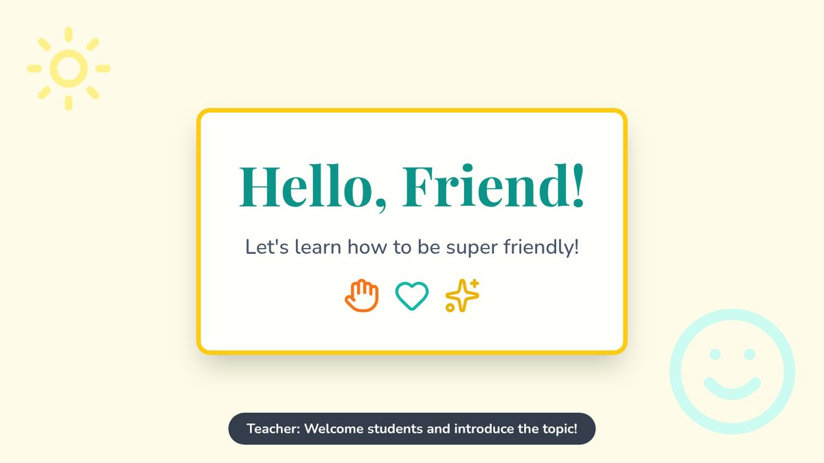 A two-part social-emotional learning series for 1st-grade students focused on the importance of greetings, making friends, and building an inclusive classroom community.