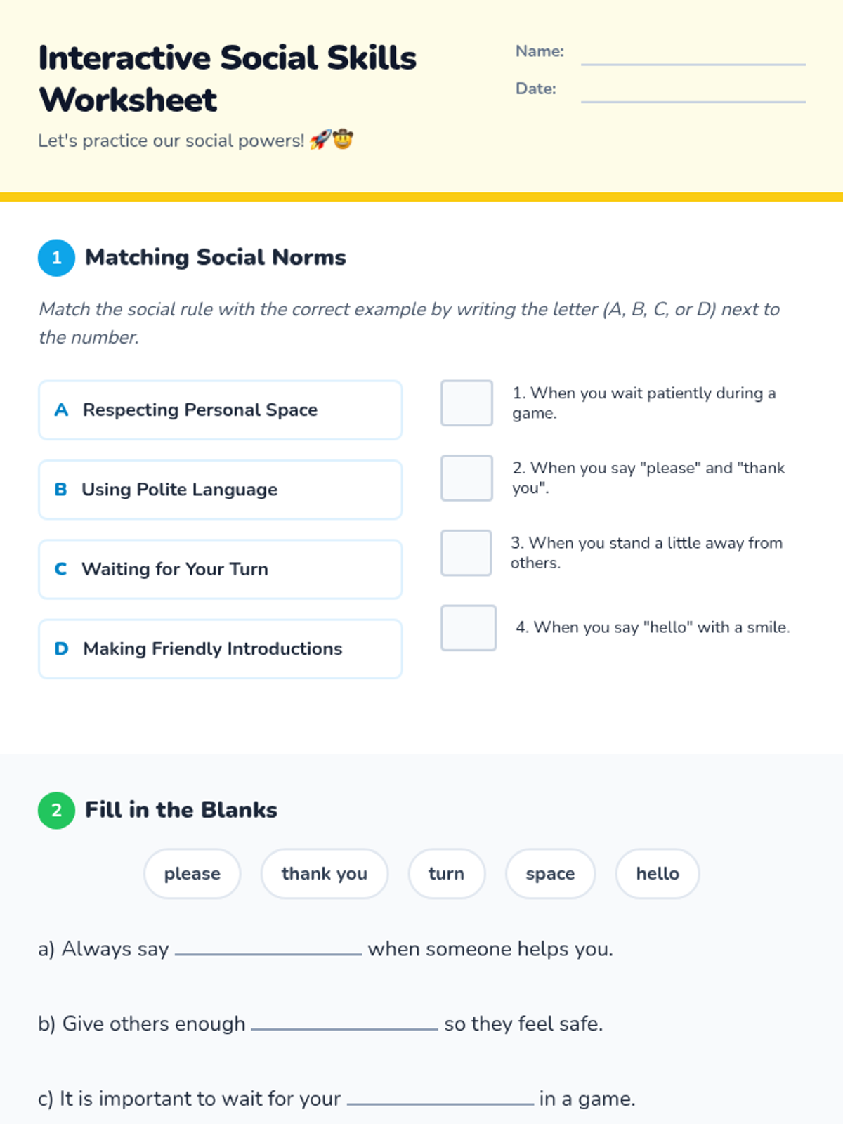 A 5-lesson sequence for 1st Grade students on identifying classroom helpers, getting attention appropriately, phrasing requests, and managing wait time. This program empowers students to advocate for their needs independently and politely.
