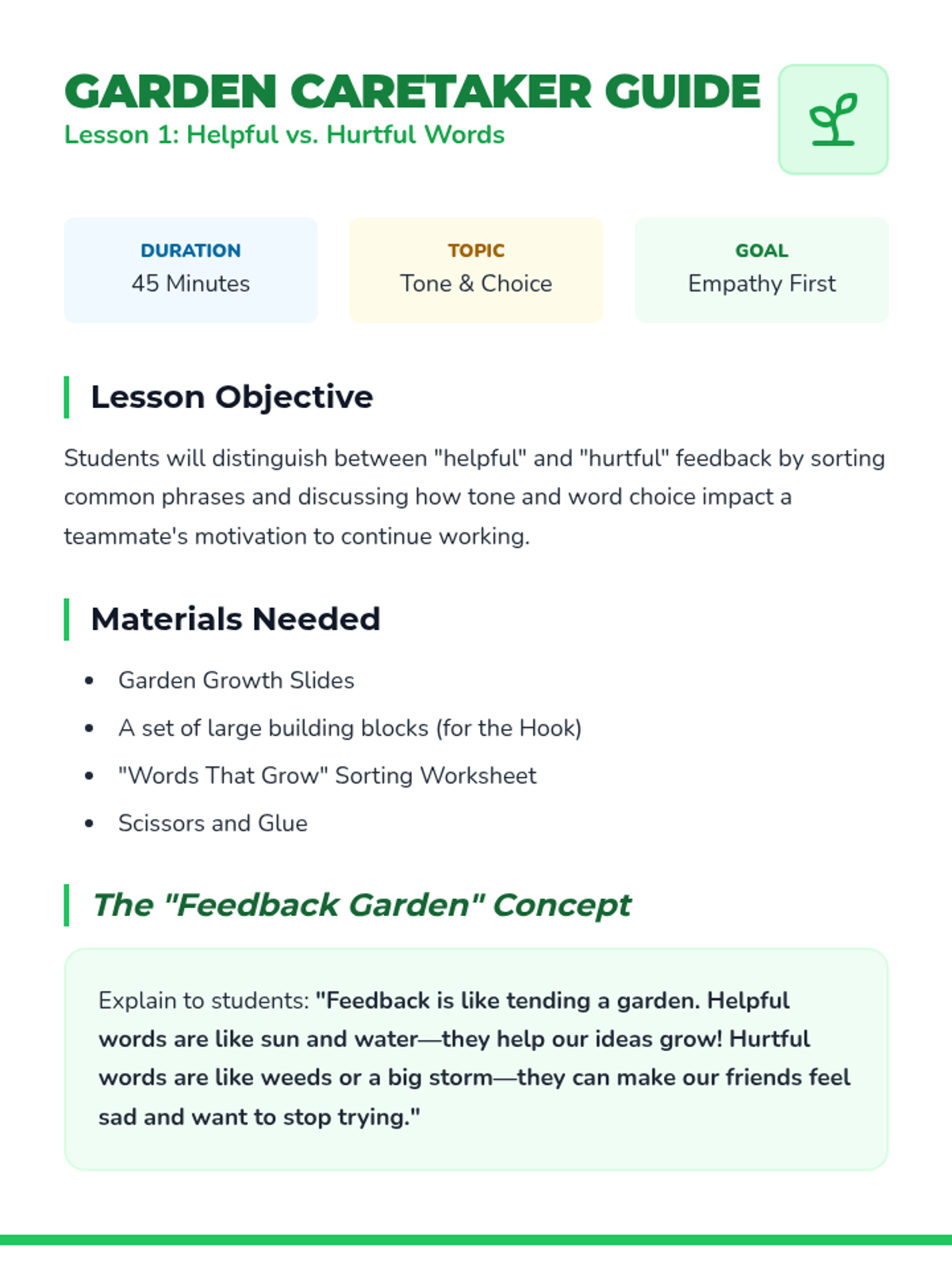 Students learn to observe non-verbal cues, respect privacy, offer support, and practice active listening to transform daily check-ins into a community-building tool. This sequence fosters empathy and a supportive classroom culture through practical social-emotional skills.