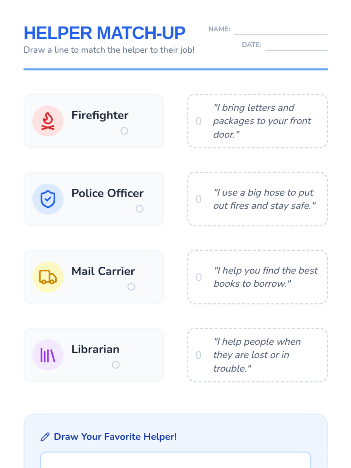 A project-based sequence for 1st grade students focusing on identifying community helpers, understanding social boundaries, and practicing safe, context-appropriate greetings through the creation of a personal 'Greeting Guide'.
