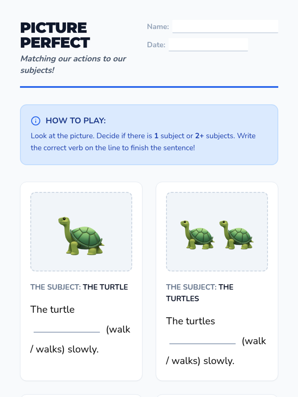 A creative, project-based unit where 1st graders build a physical flip-book to visualize and master subject-verb agreement. Students design subjects and predicates separately to see how they must match to make sense.