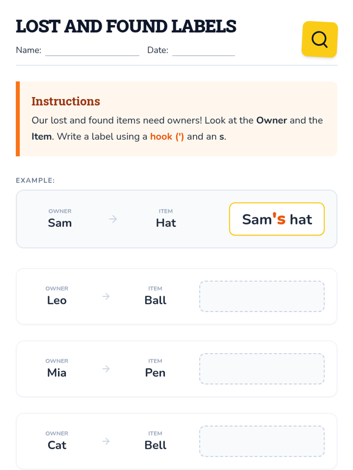 A comprehensive first-grade sequence exploring singular and plural nouns. Students learn to distinguish between 'one' and 'more than one' and master the application of -s and -es suffixes through interactive activities, scavenger hunts, and sentence building.