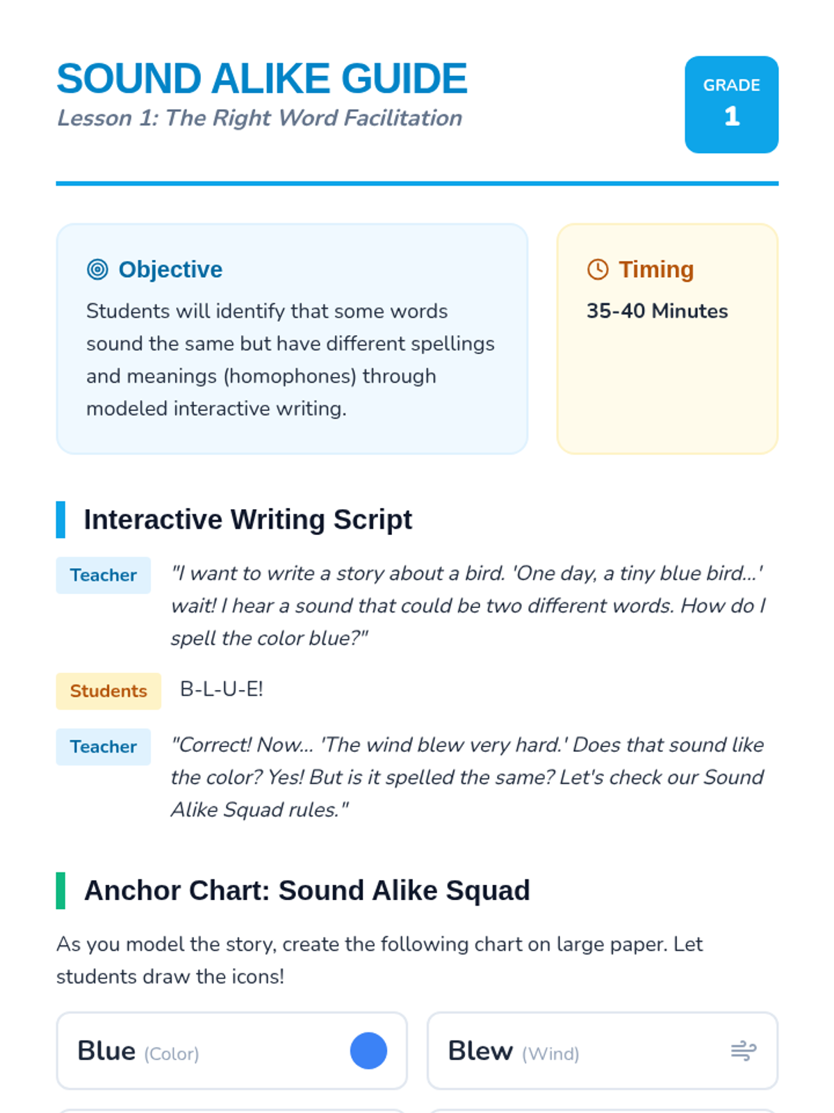 A 1st-grade ELA sequence where students become 'Word Detectives' to identify and correct homophones like no/know and right/write in context. Through inquiry and hands-on investigation, students learn why spelling matters for meaning.