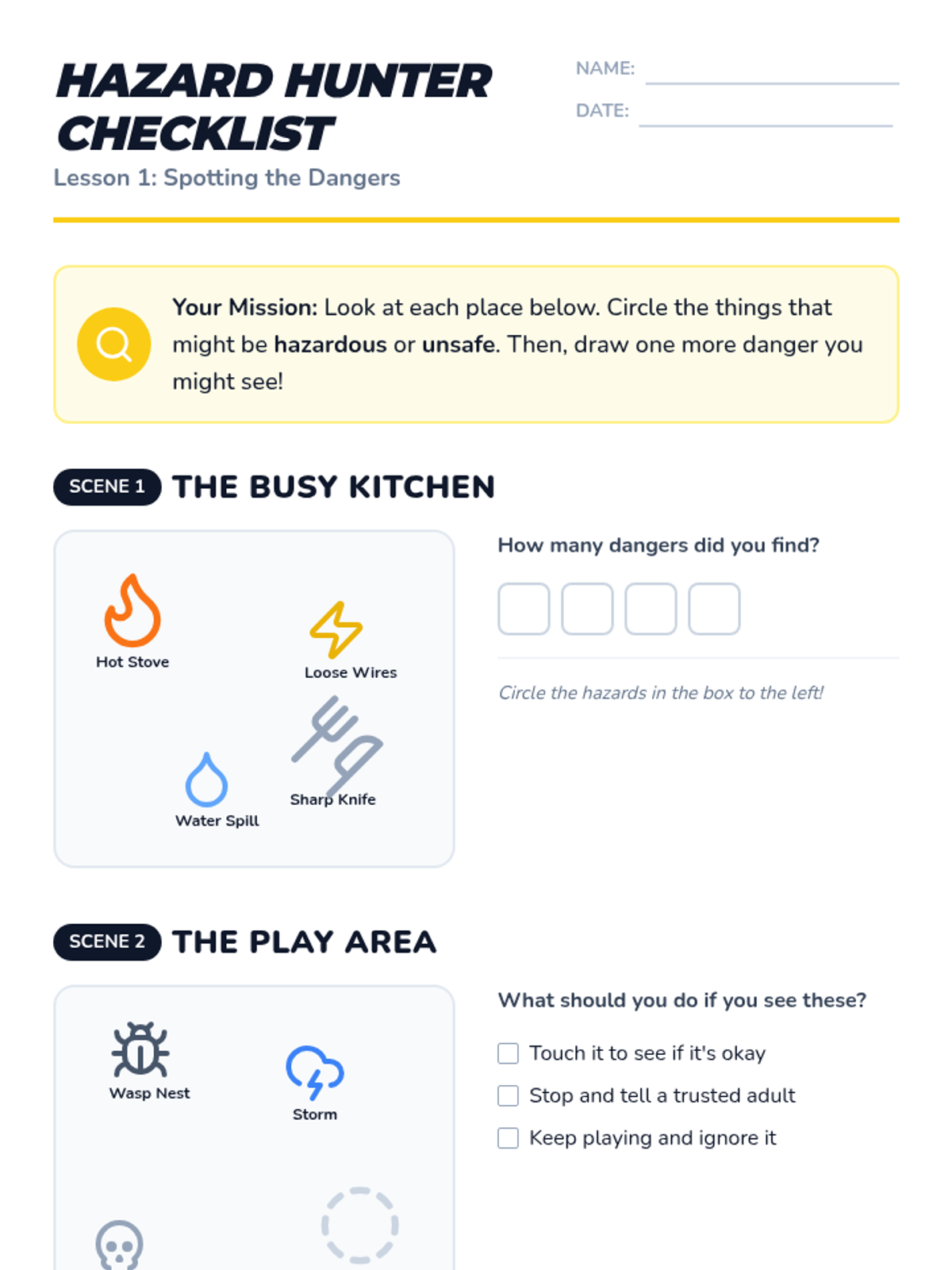Recognizing Unsafe SituationsIdentifies physical and social cues that signal danger in various environments. Strengthens situational awareness and boundary-setting skills to help students navigate potential risks safely.