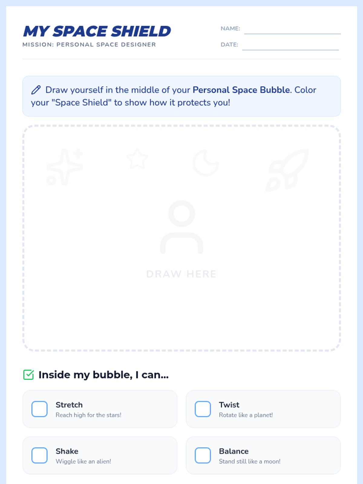 Personal BoundariesIdentification of personal space, consent, and verbal boundary-setting strategies. Equips students to communicate comfort levels and recognize appropriate physical interactions in social contexts.
