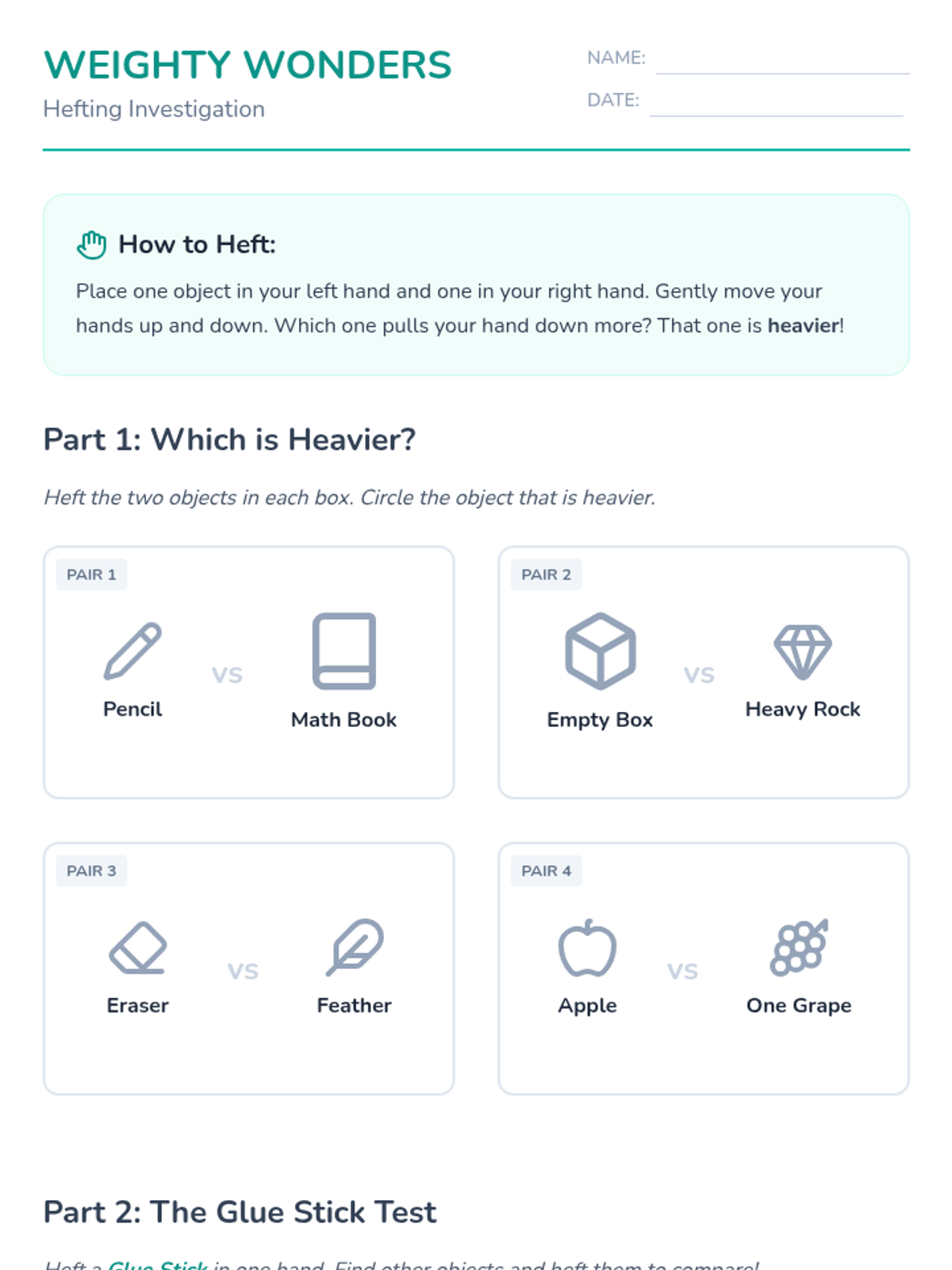 An inquiry-based sequence for 1st Grade students to explore mass and weight using balance scales. Students progress from sensory hefting to using standard units and conducting a mystery bag lab to understand measurement.