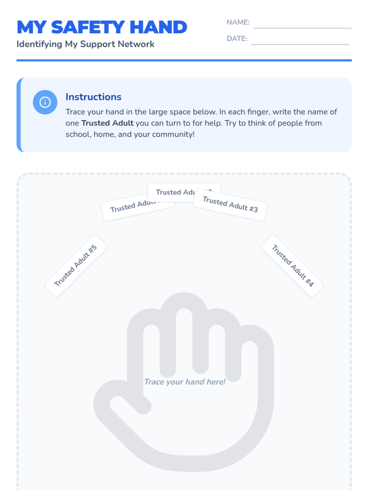 A five-lesson sequence for 2nd-grade students focusing on identifying trusted adults, distinguishing between problem sizes, and using assertive communication to seek help effectively. students will build a personal support network and practice the persistence needed to ensure their safety and well-being.