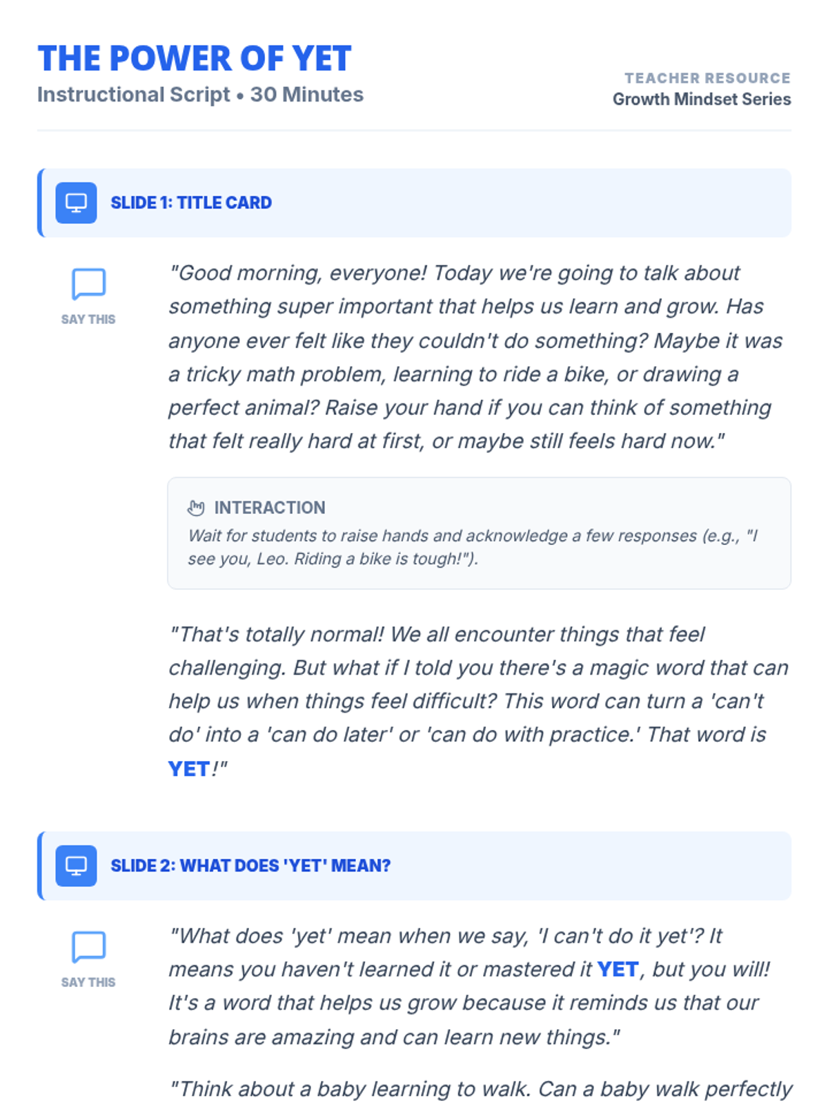 This sequence empowers elementary students with two essential life skills: developing a growth mindset through the "Power of Yet" and understanding personal boundaries and safety in "My Voice is Powerful."
