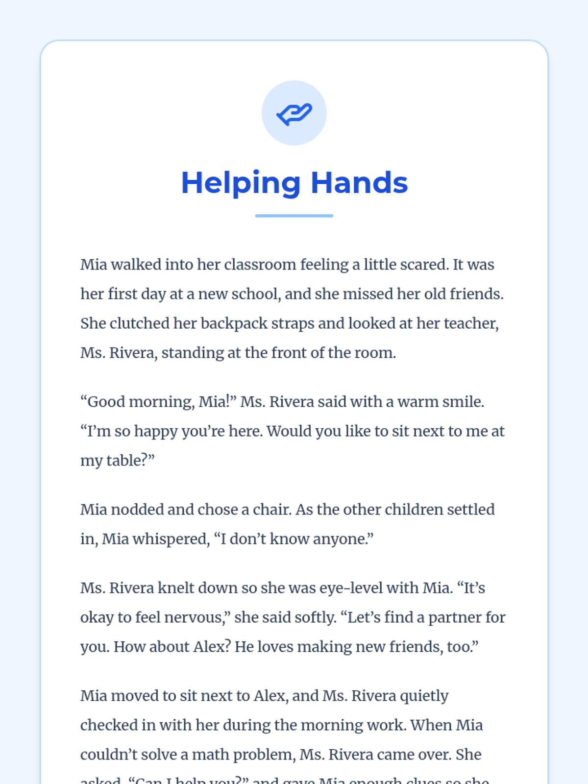 A 5-lesson sequence for 2nd graders focused on identifying support systems, distinguishing between tattling and reporting, practicing 'I' statements, setting personal boundaries, and applying self-advocacy skills in real-world scenarios. Students will build a comprehensive toolkit for seeking help and communicating their needs confidently.