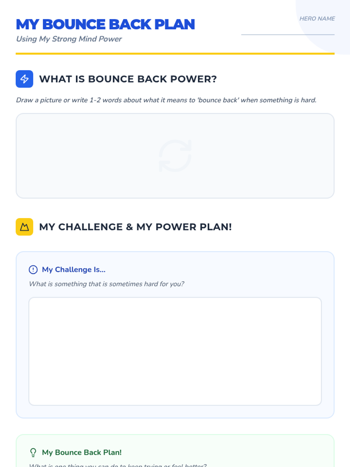 A comprehensive social-emotional learning sequence for 1st-4th grade students, focusing on resilience, online safety, emotional regulation, and consistent effort through a 'Power Up' superhero theme.