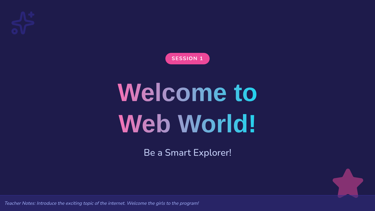 A 9-week program for girls aged 6-9 focused on online safety, digital citizenship, and empowered web exploration. Each session builds foundational skills to navigate the digital world confidently and safely.