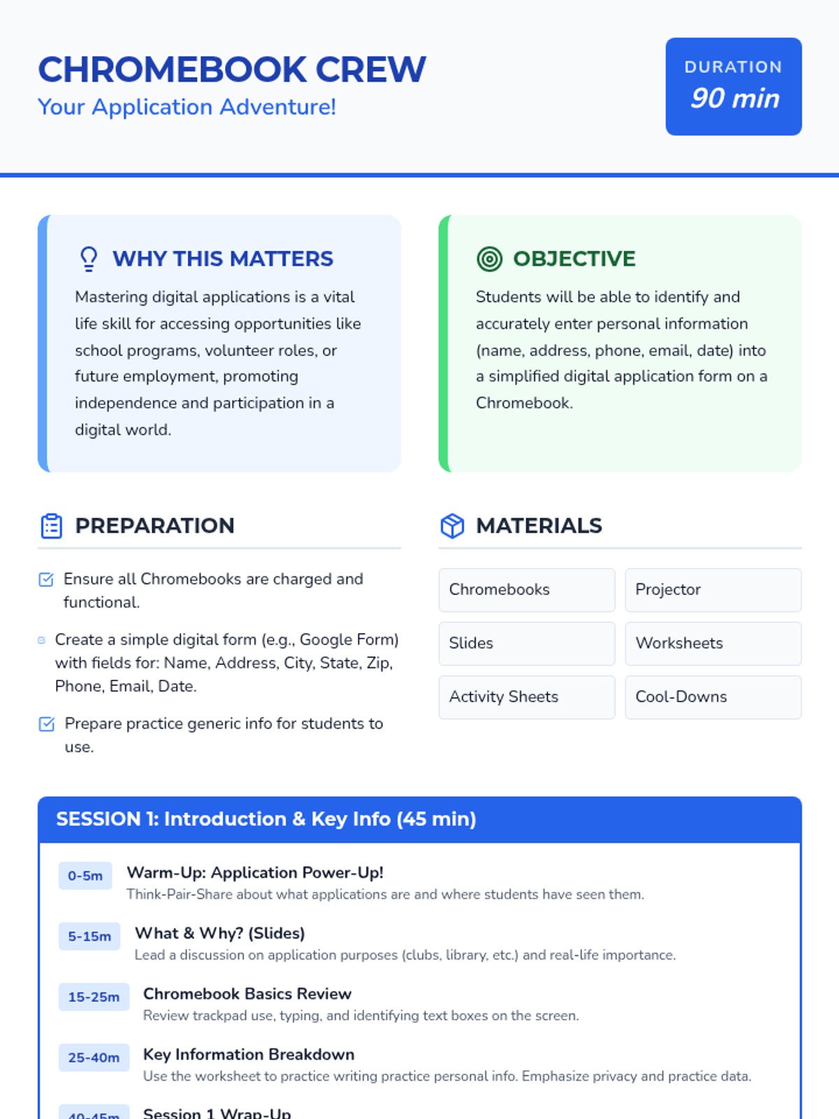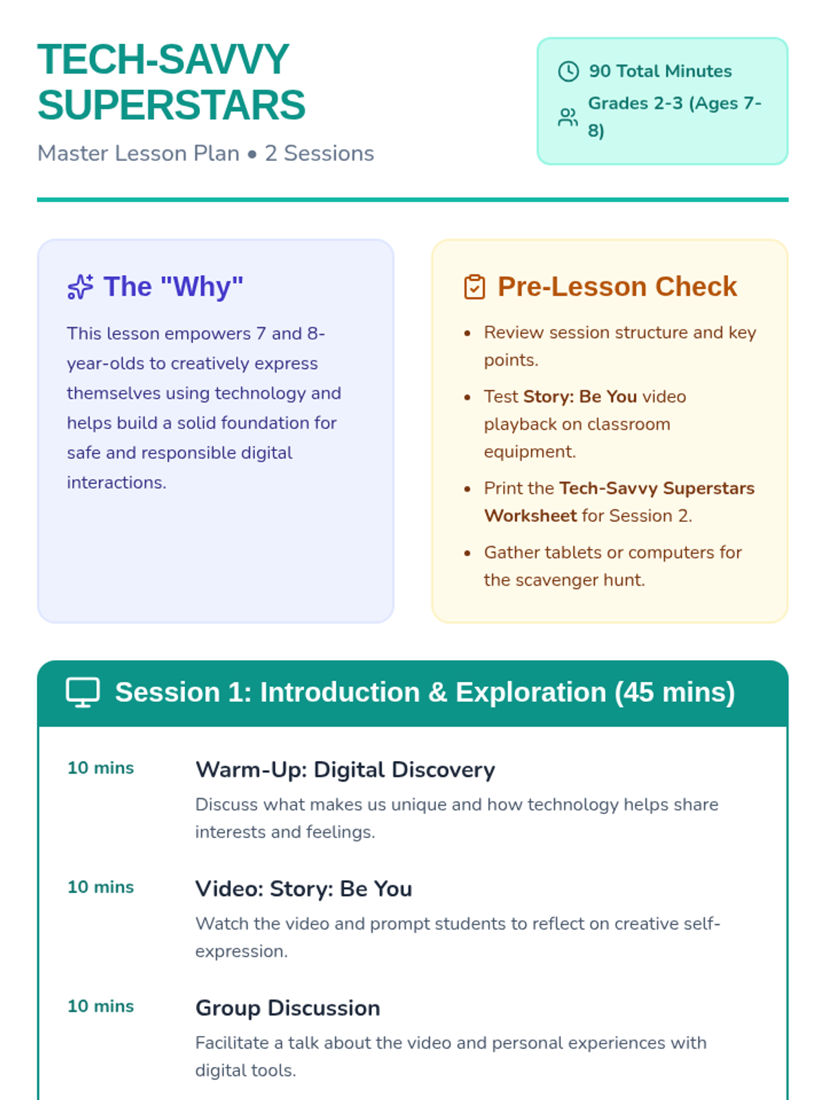 A comprehensive sequence designed to build essential digital literacy and social-emotional skills. This sequence includes a multi-session lesson on navigating digital applications for middle school students and a creative lesson on friendship for elementary students.