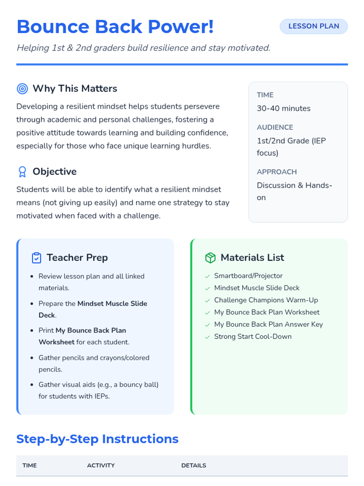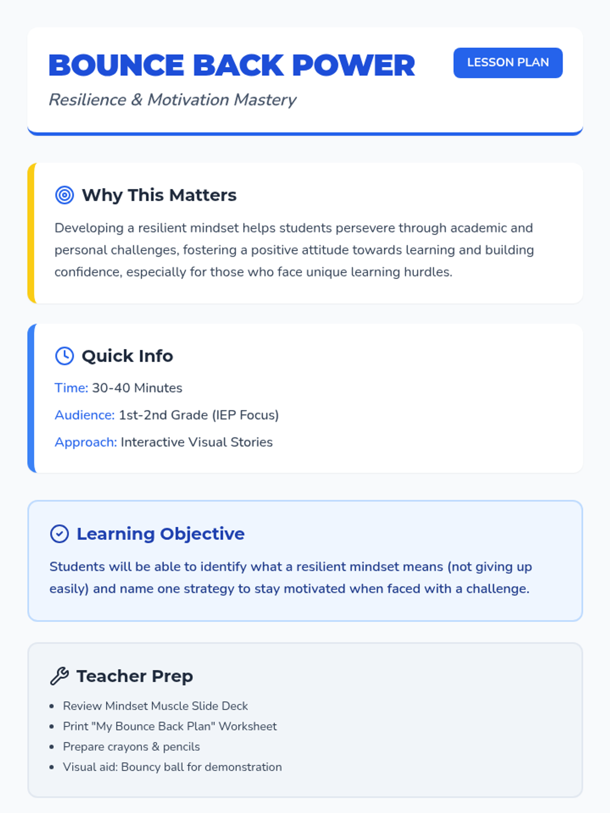A comprehensive Tier 2 social-emotional learning sequence for elementary students, covering resilience, online safety, emotional regulation, effort, and honesty. This sequence includes tailored lessons for both younger (1st-2nd) and older (3rd-4th) elementary students, with a strong focus on accessibility for students with IEPs.